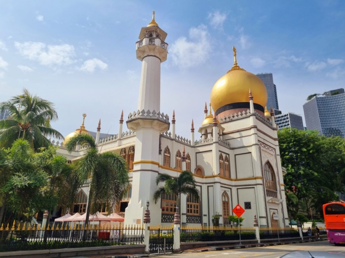 싱가포르 최초의 술탄인 술탄 후세인샤를 위해 1824년에 건립됐다. 1932년에 재건축된 이곳은 싱가포르 이슬람 사원 중 가장 화려한 종교 건축물에 속한다. 고대 페르시아와 무어, 튀르키예(터키)의 영향을 결합한 영국풍 인도양식, 인도 사라센 스타일의 특징을 가지고 있다. 이곳을 둘러보면서 양파형 돔을 살펴보면 각 돔의 바닥이 유리병의 끝으로 장식된 것이 보이는데 가난한 무슬림들이 기부한 것이다. 부자에게만 국한되지 않고 모든 무슬림이 모스크를 함께 건축했다는 의미도 볼 수 있다.