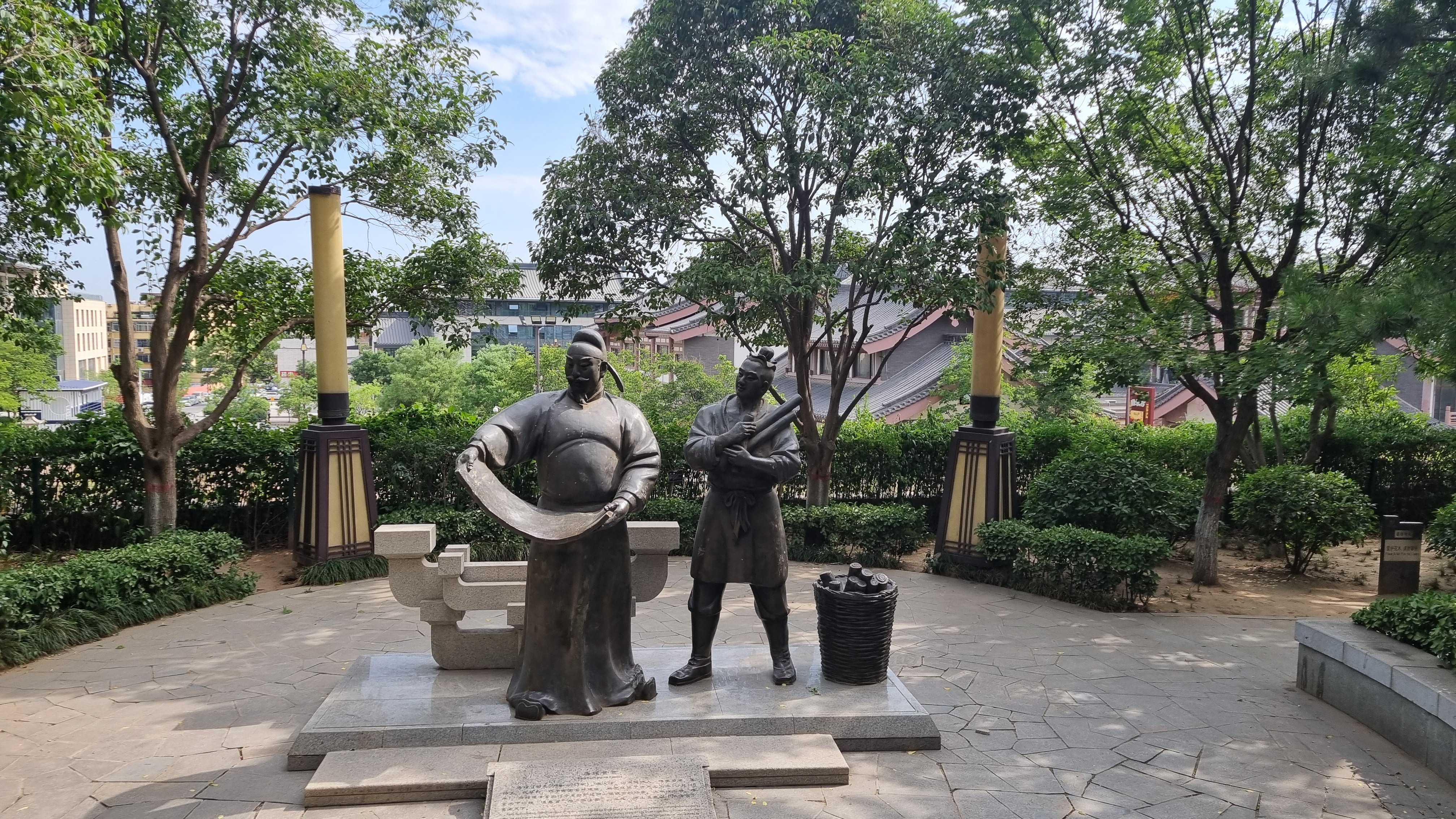 화청궁 광장의 '춤추는 양귀비와 장구치는 당현종' 조형물