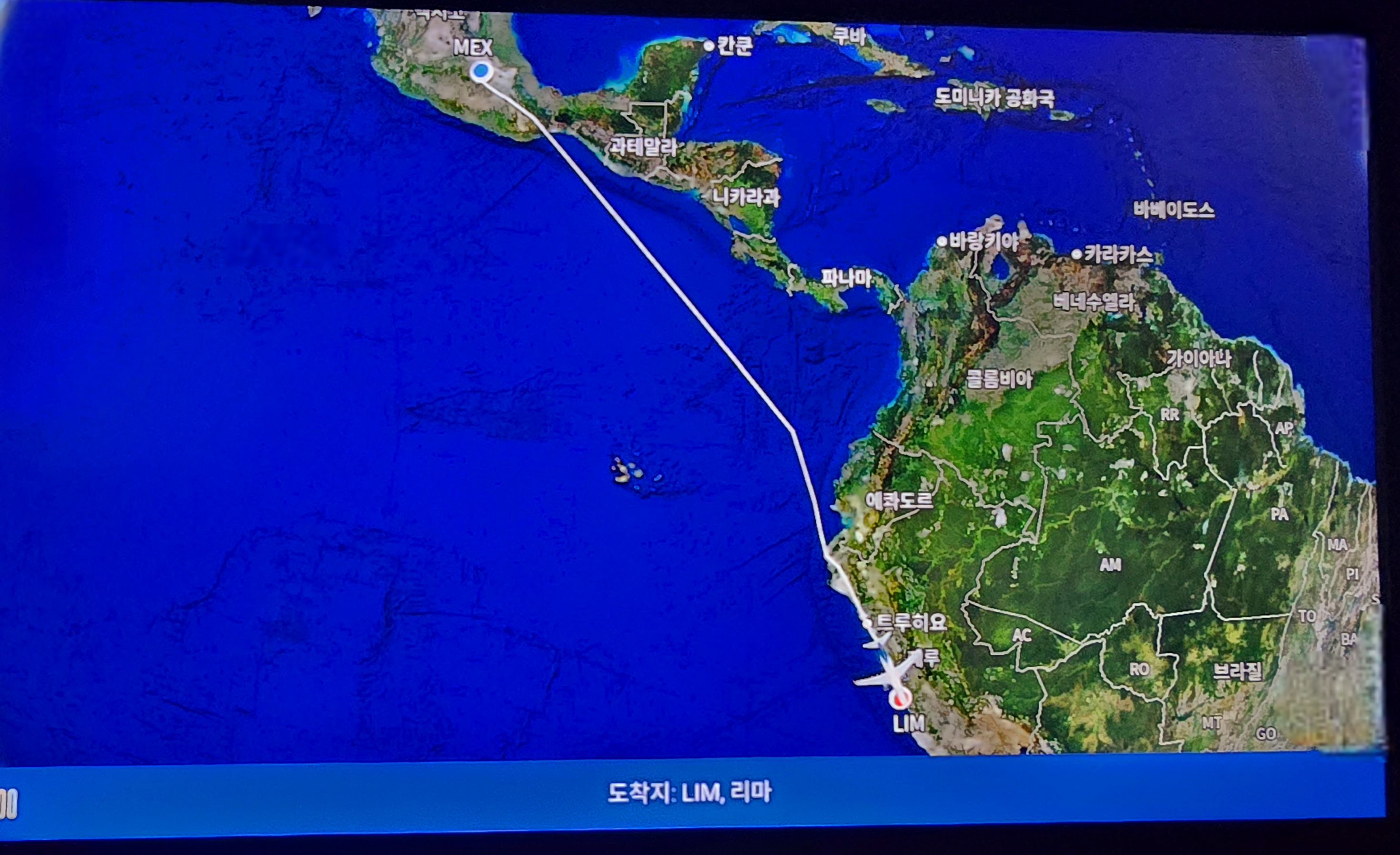 우리는 11:30인천 출발하여 13시간 40분 비행기를 타고 날짜 변경선을 지나 멕시코시티 공항 도착하여 다시 그곳에사 한참을 기다려 경유 비행기로 갈아타고 6시간을 날라 페루 리마공항도착해야 하는 20시간의 기나긴 비행 여정이 우리를 기다리고 있다...