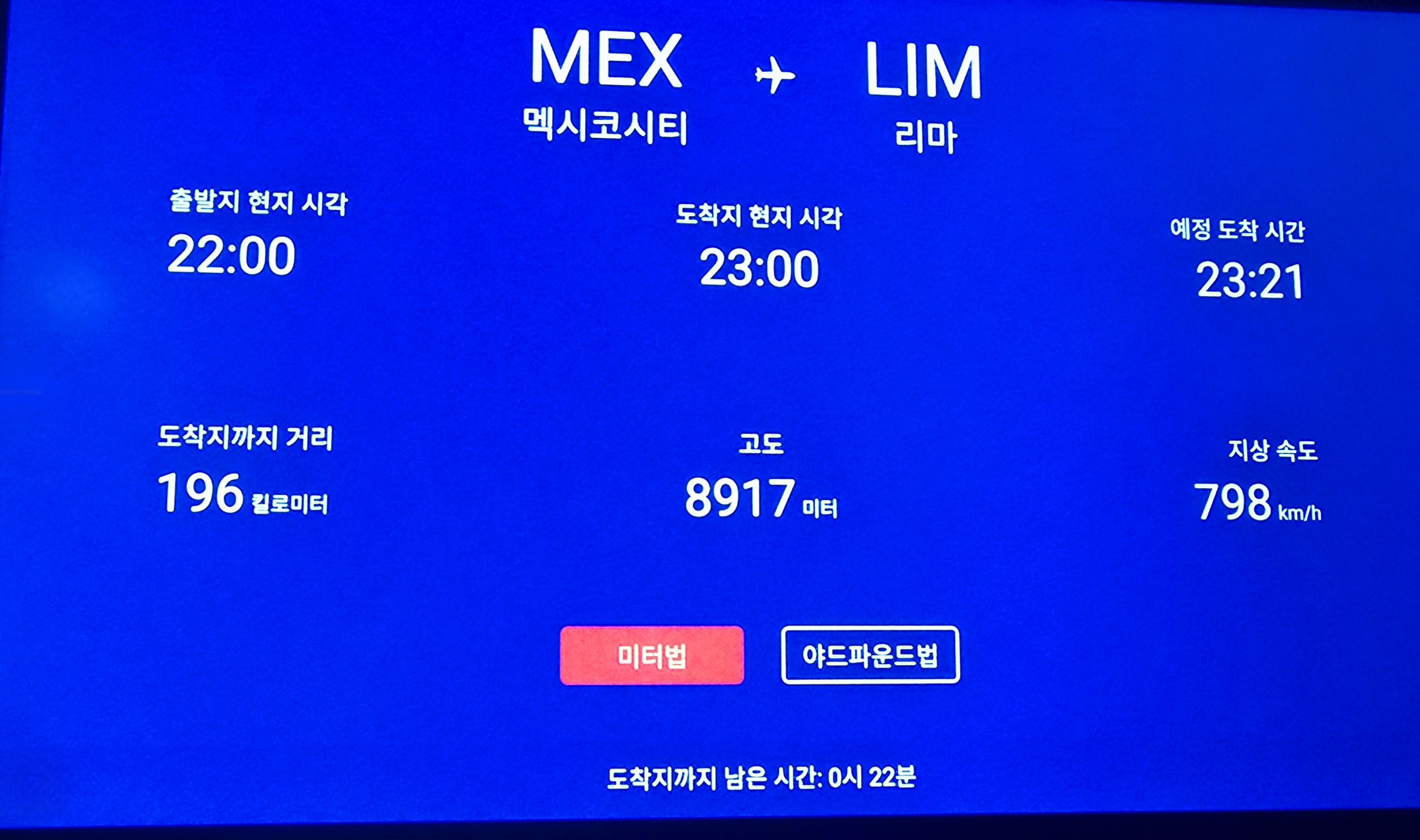 16:30 멕시코시티에서 페루 리마공항으로 출발하는 비행기에 탑승한다...
