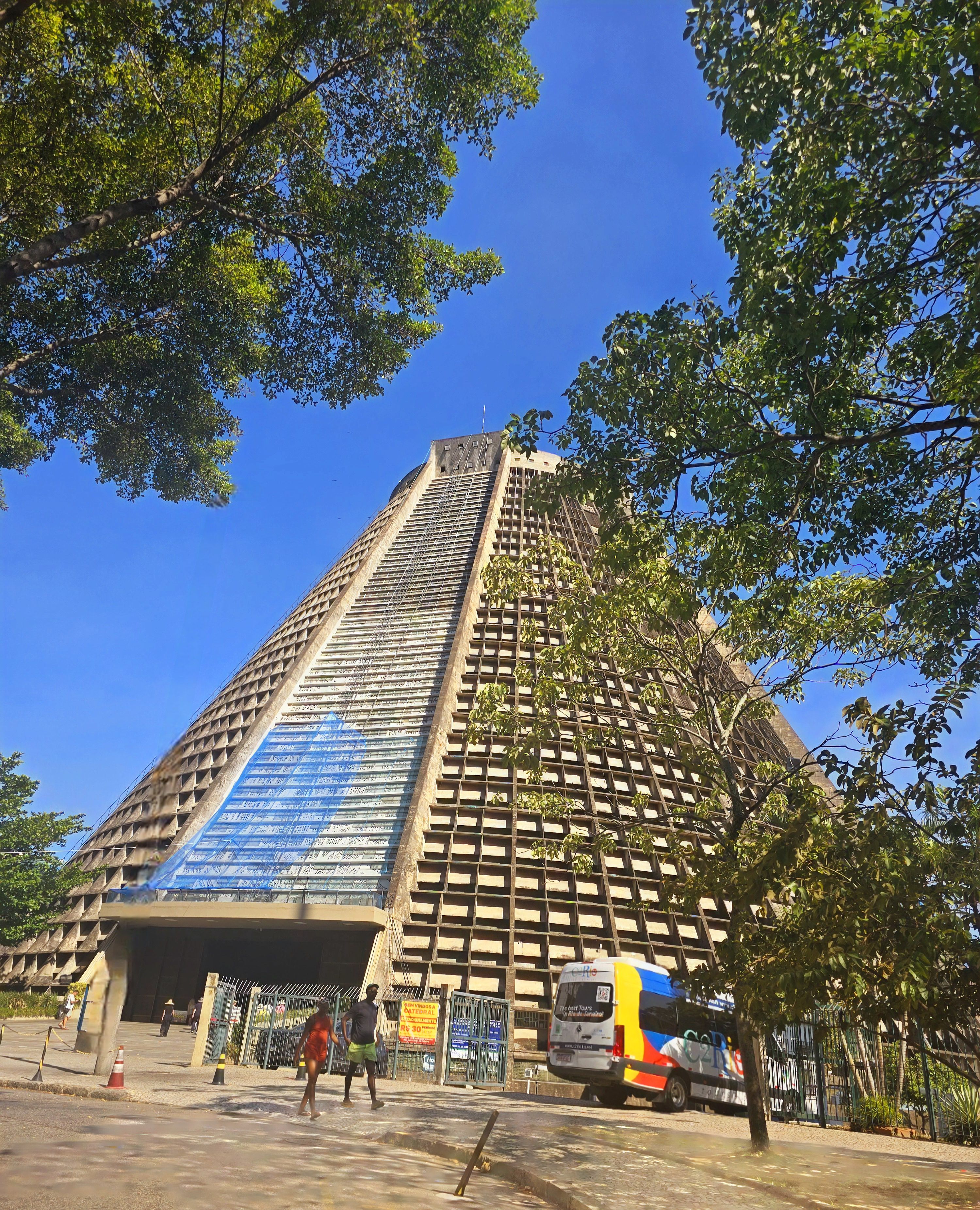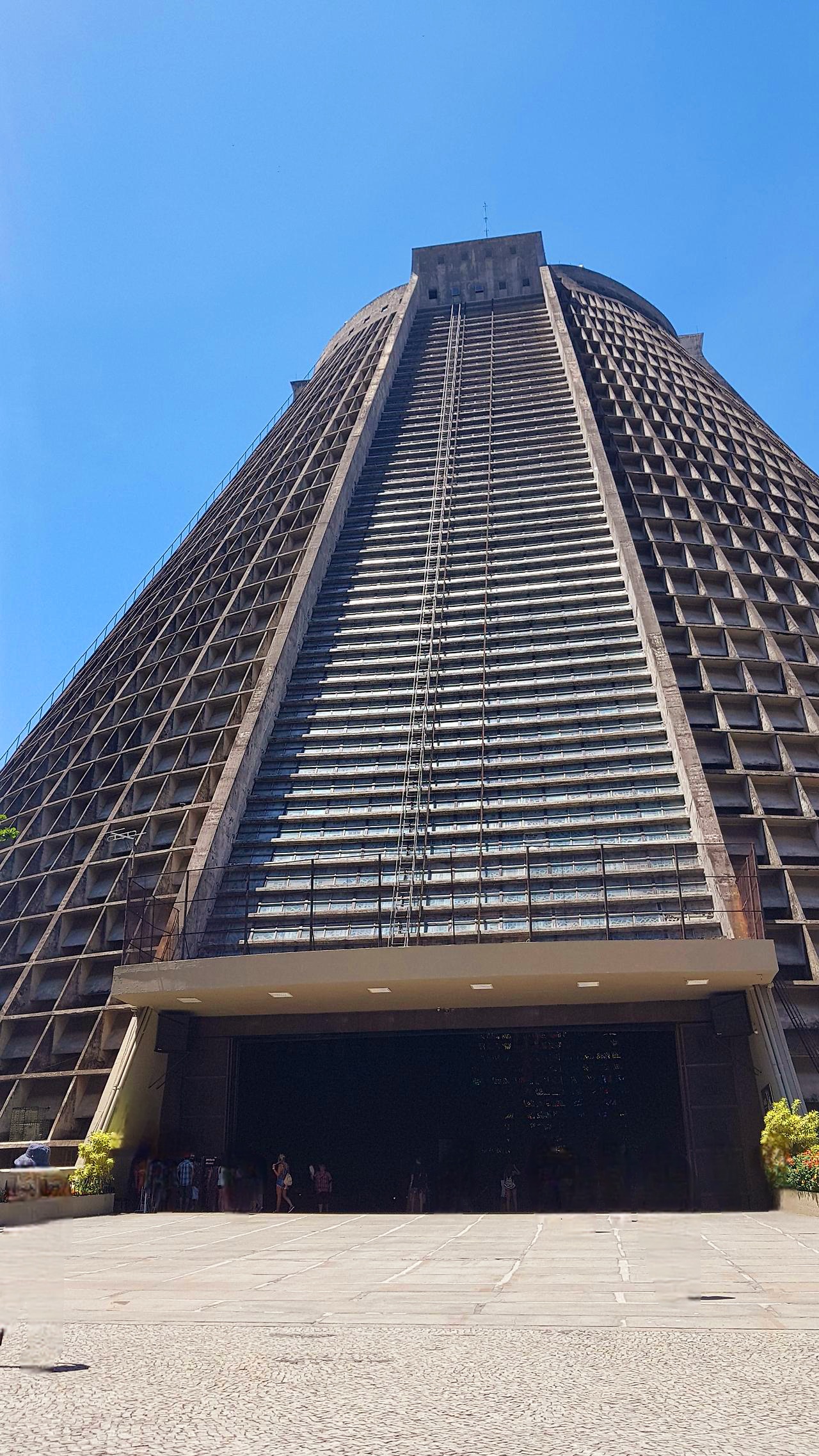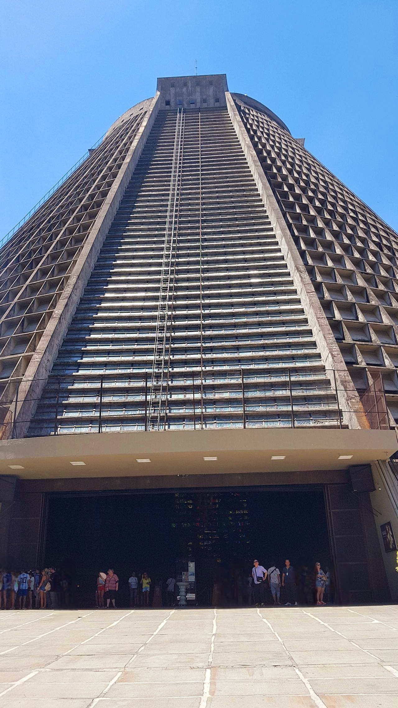 아름다운 원뿔형의 피라미드 모양인 이 성당은 리우의 상징적인 건축물 중 하나라고 하는데, 높이 106m의 돔과 12사도를 상징하는 12개의 첨탑으로 이루어져 있다.