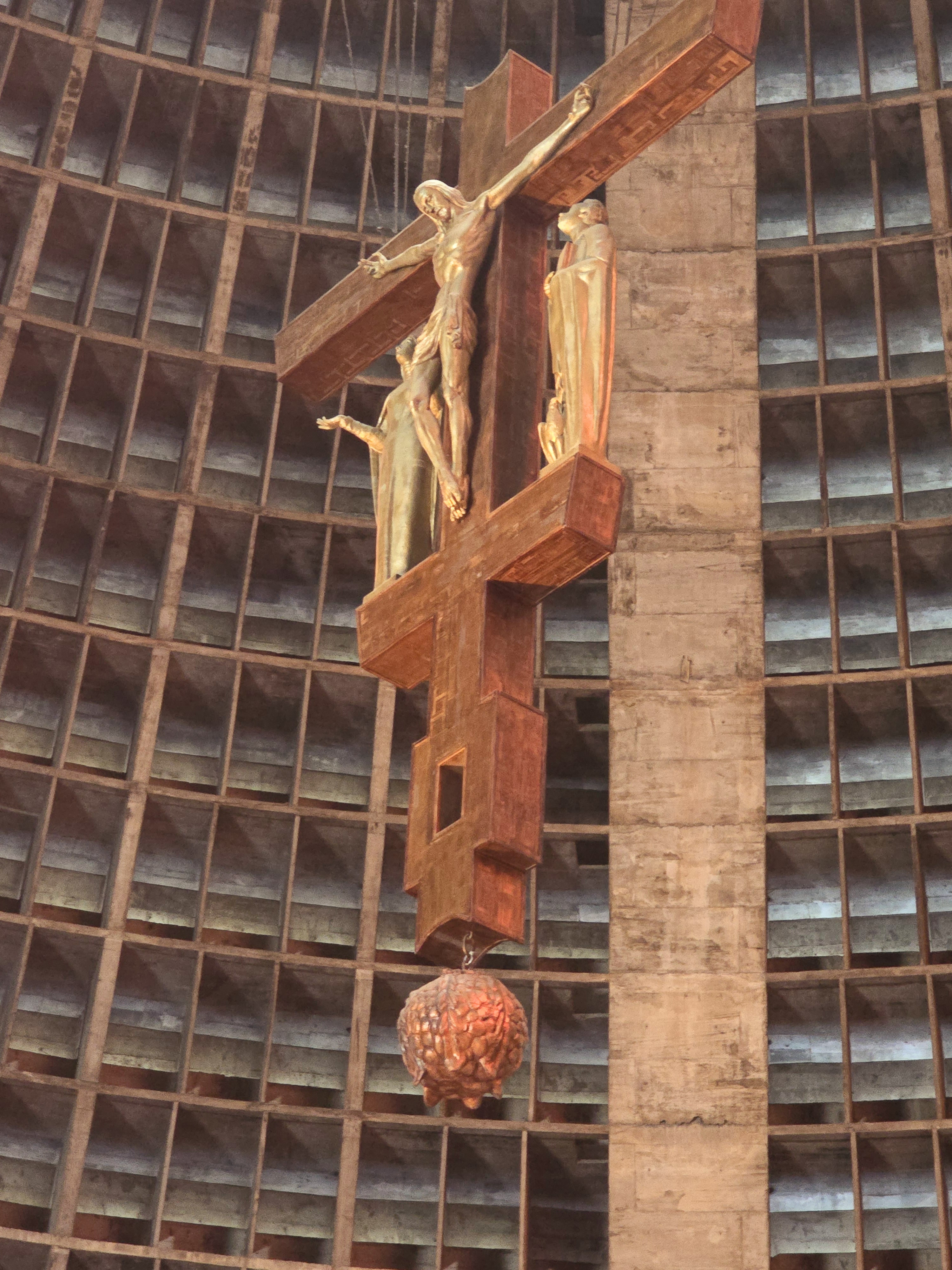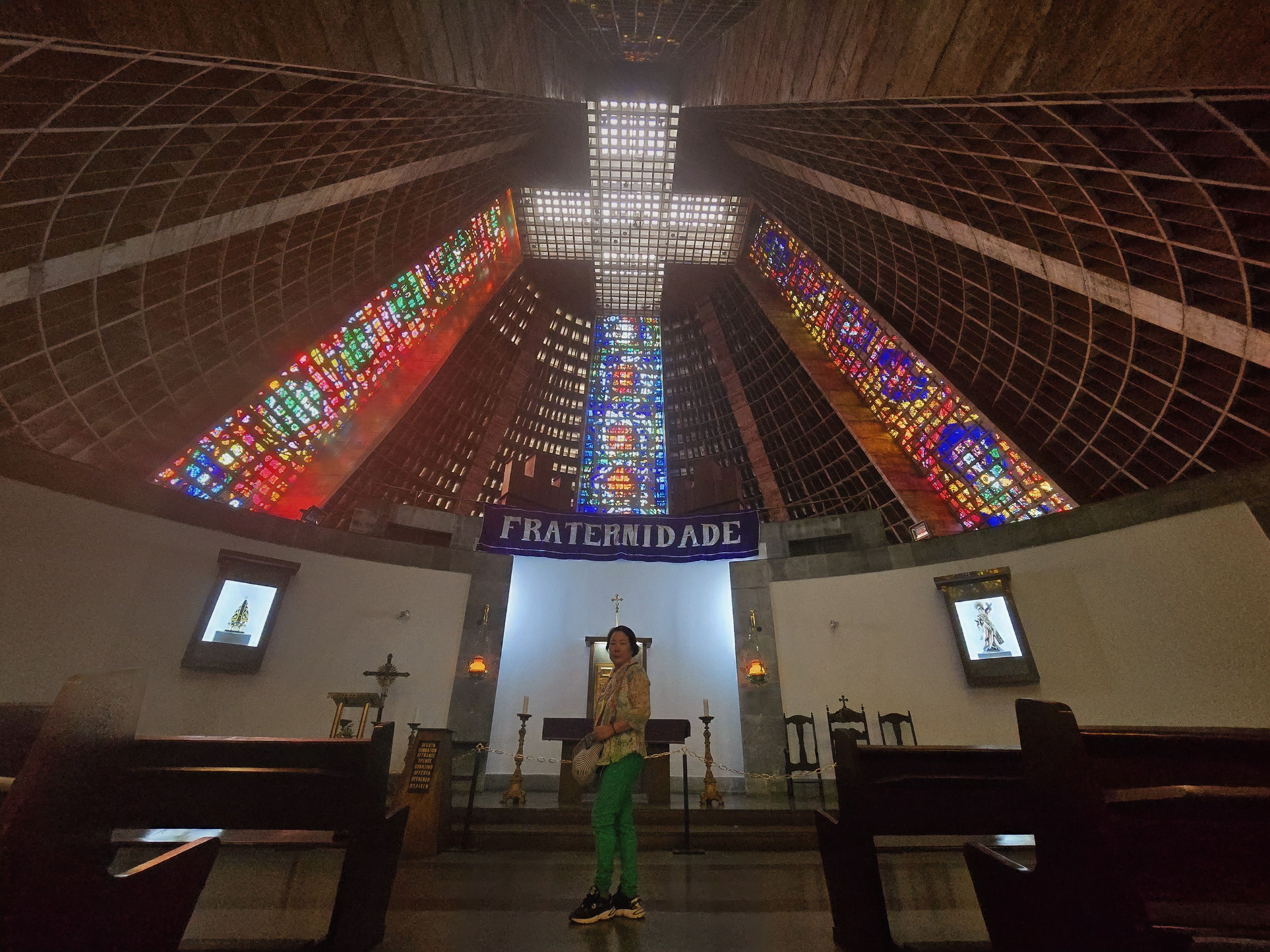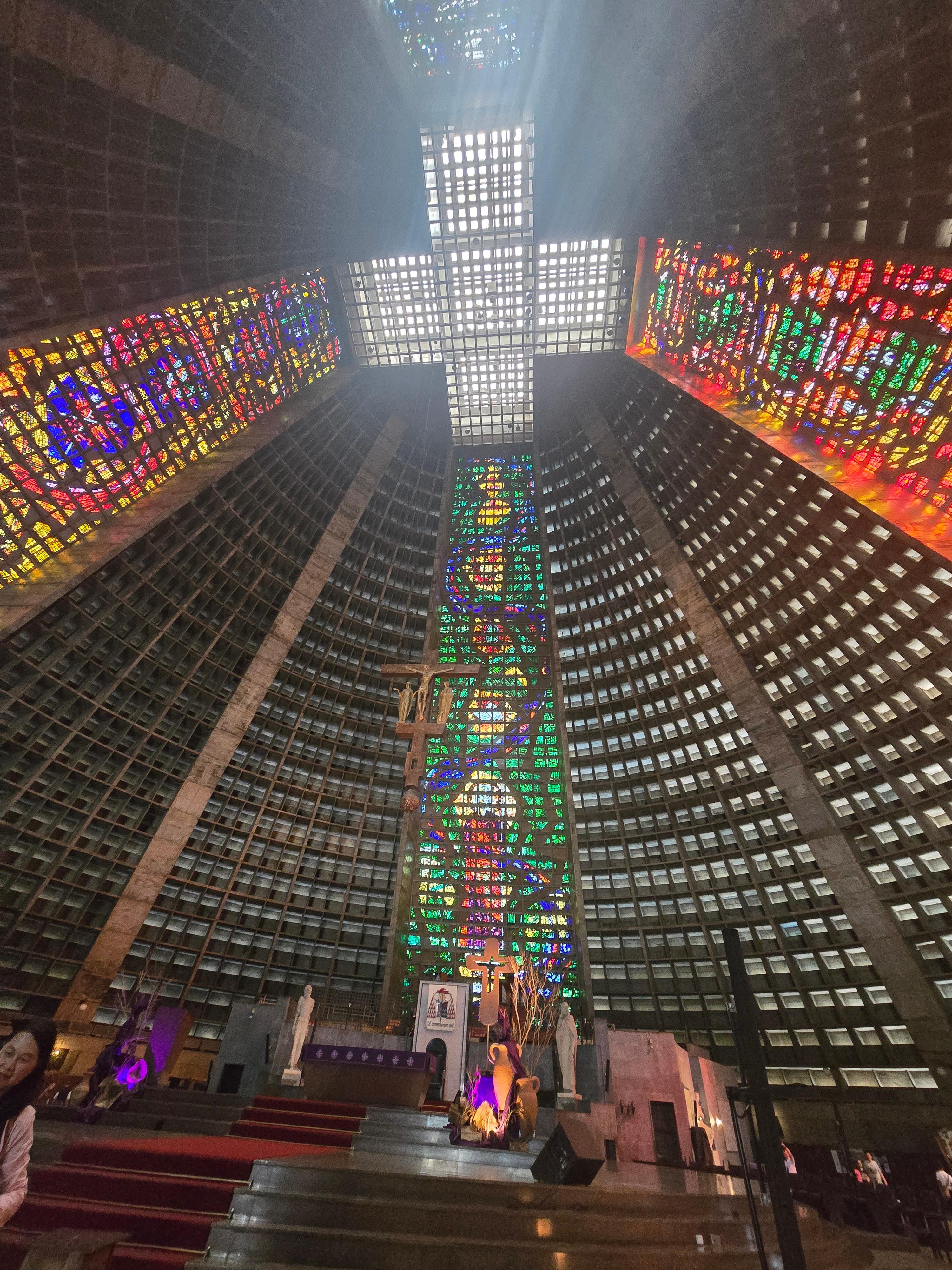 아름다운 원뿔형의 피라미드 모양인 이 성당은 리우의 상징적인 건축물 중 하나라고 하는데, 높이 106m의 돔과 12사도를 상징하는 12개의 첨탑으로 이루어져 있다.