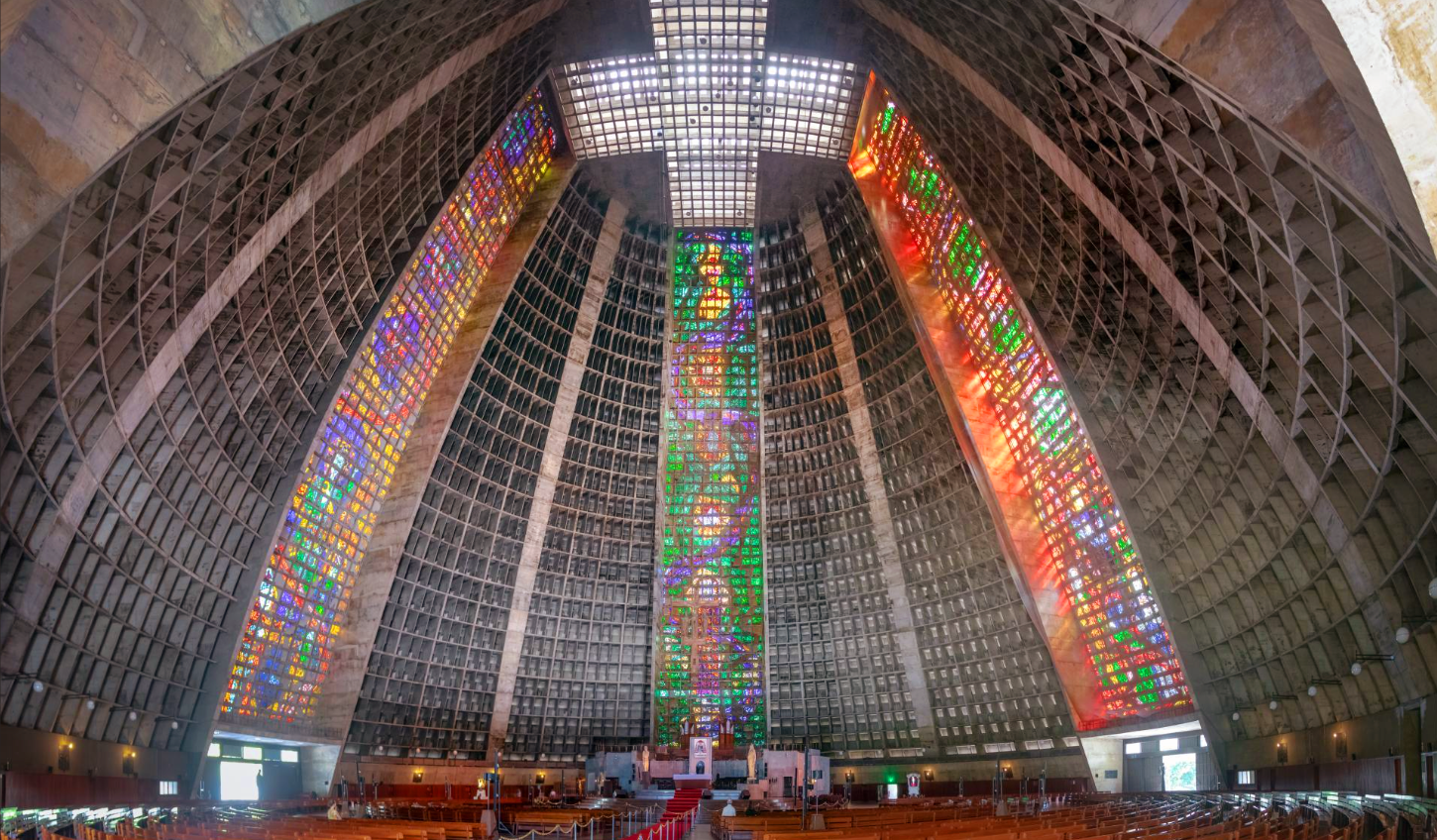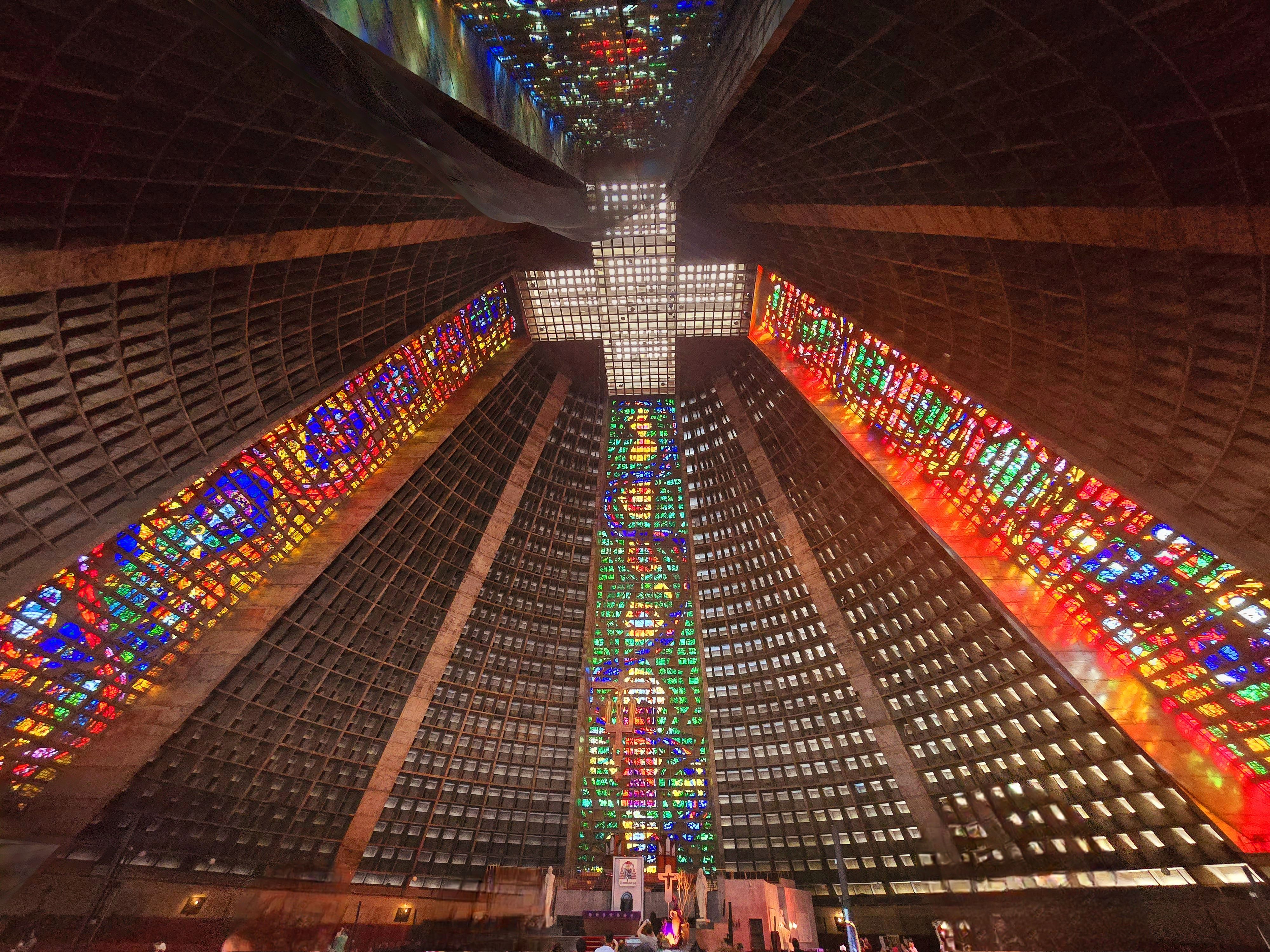 성당 같지 않는 독특한 외관(피라미드 모양)을 가진 리우데자네이루(Rio de Janeiro)의 명물 메트로폴리탄 대성당(Catedral Metropolitana)은 천장의 십자가 모양의 유리를 통해 성당 내부로 은은하게 빛이 들어오는 구조이며, 네 개의 면에는 스테인드글라스를 장식해 아름답고 신비로운 느낌을 주었다.