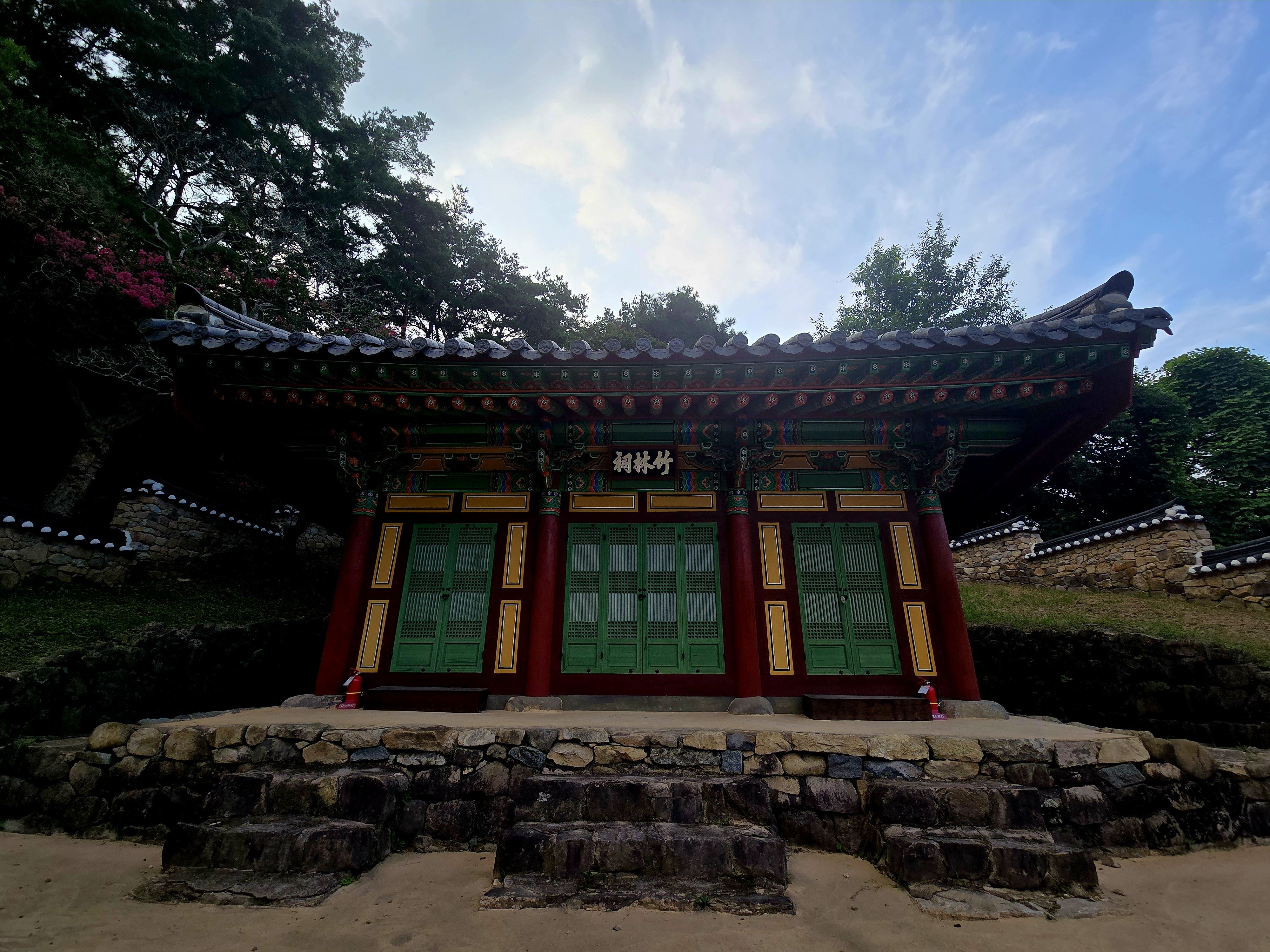 죽림사 강당 취사당(聚斯堂)과 서재, 죽림재와 뒤로 죽림사가 자리하고 그 앞으로 장서각과