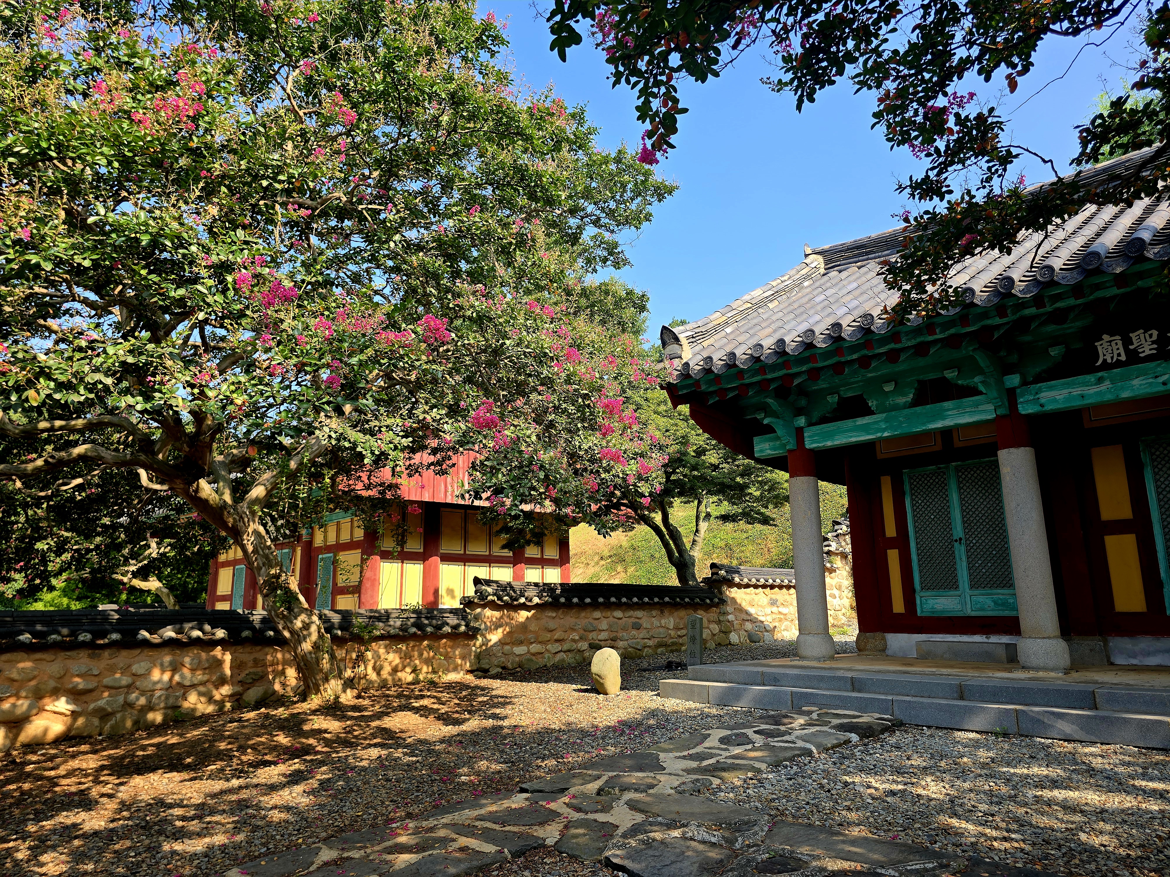 여름에서 가을로 가는 길목에 전통 건축과 함께 피는 분홍빛 꽃의 고요를 느끼고 싶다면군산 옥구향교와 문창서원 찾아가보시길 추천한다 마음이 한결 가벼워지고 풍경이 오래도록 남을 것이다.
