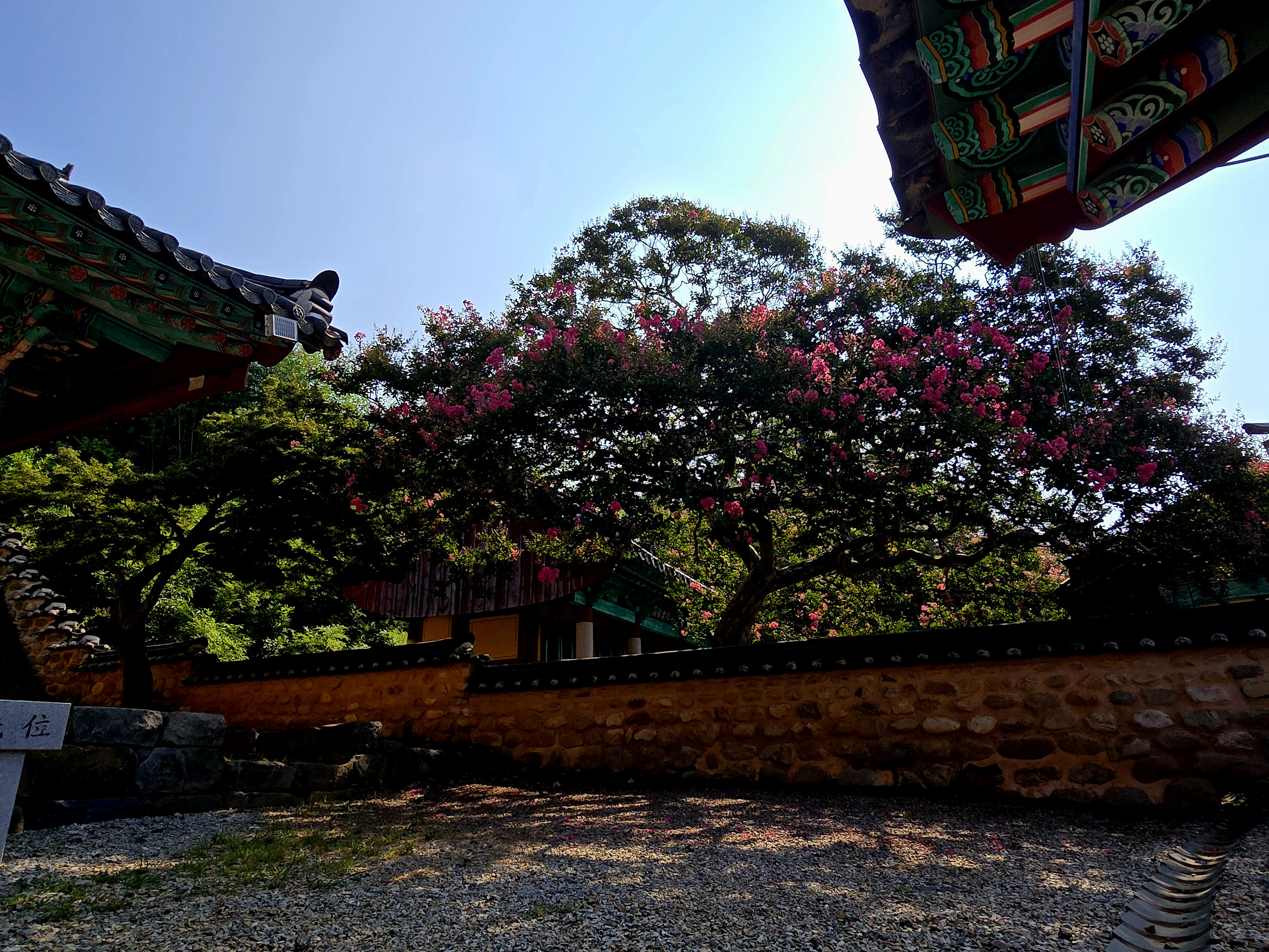 꽃이 오래 피는 특성 덕분에 가을까지도 화사한 풍경을 즐길 수 있을것 같다. 서원의 엄숙함과 배롱꽃의 부드러움이 어우러지며 고즈넉한 시간이 흘러가는 듯한 평화로움이 있었다.