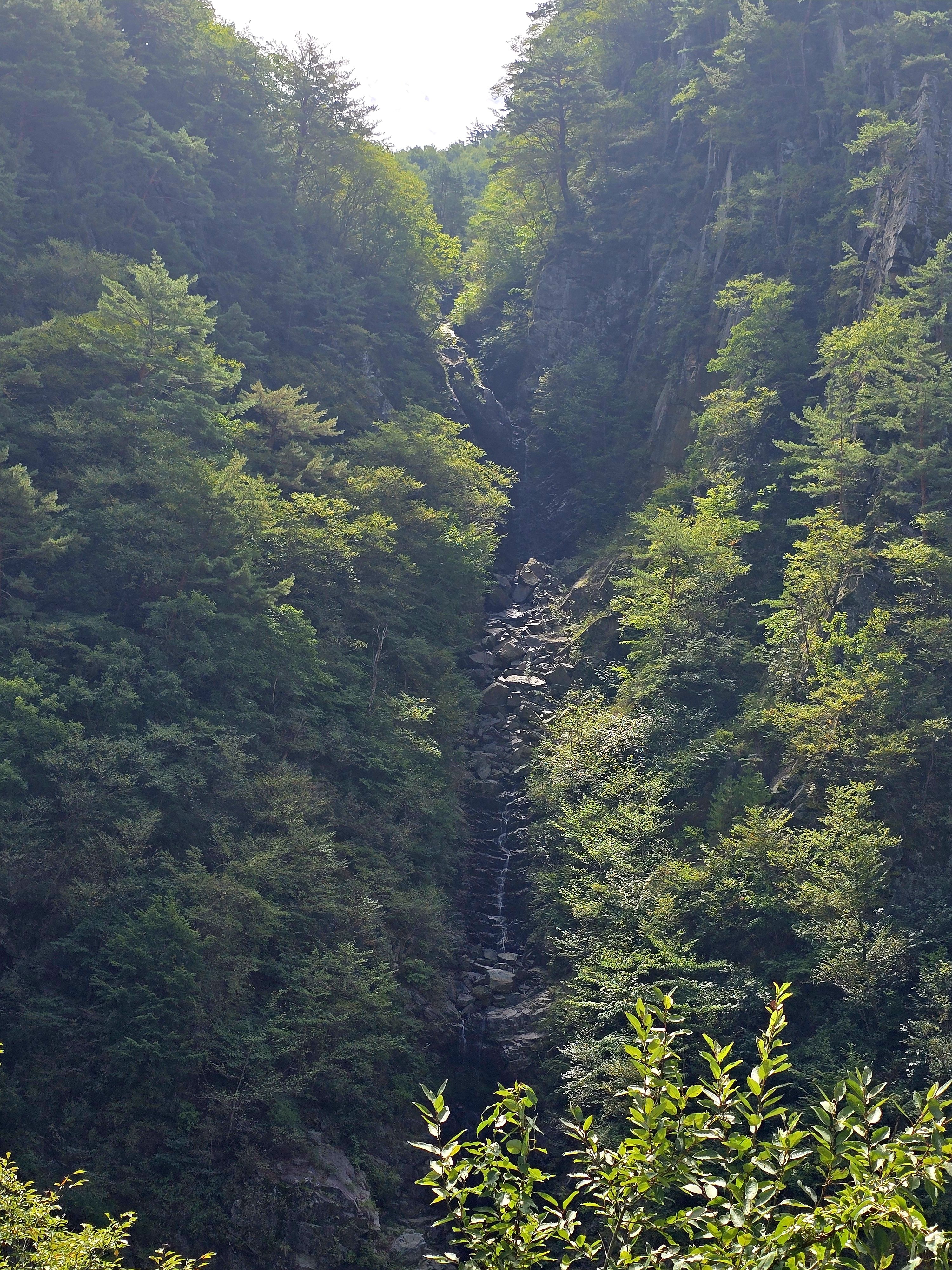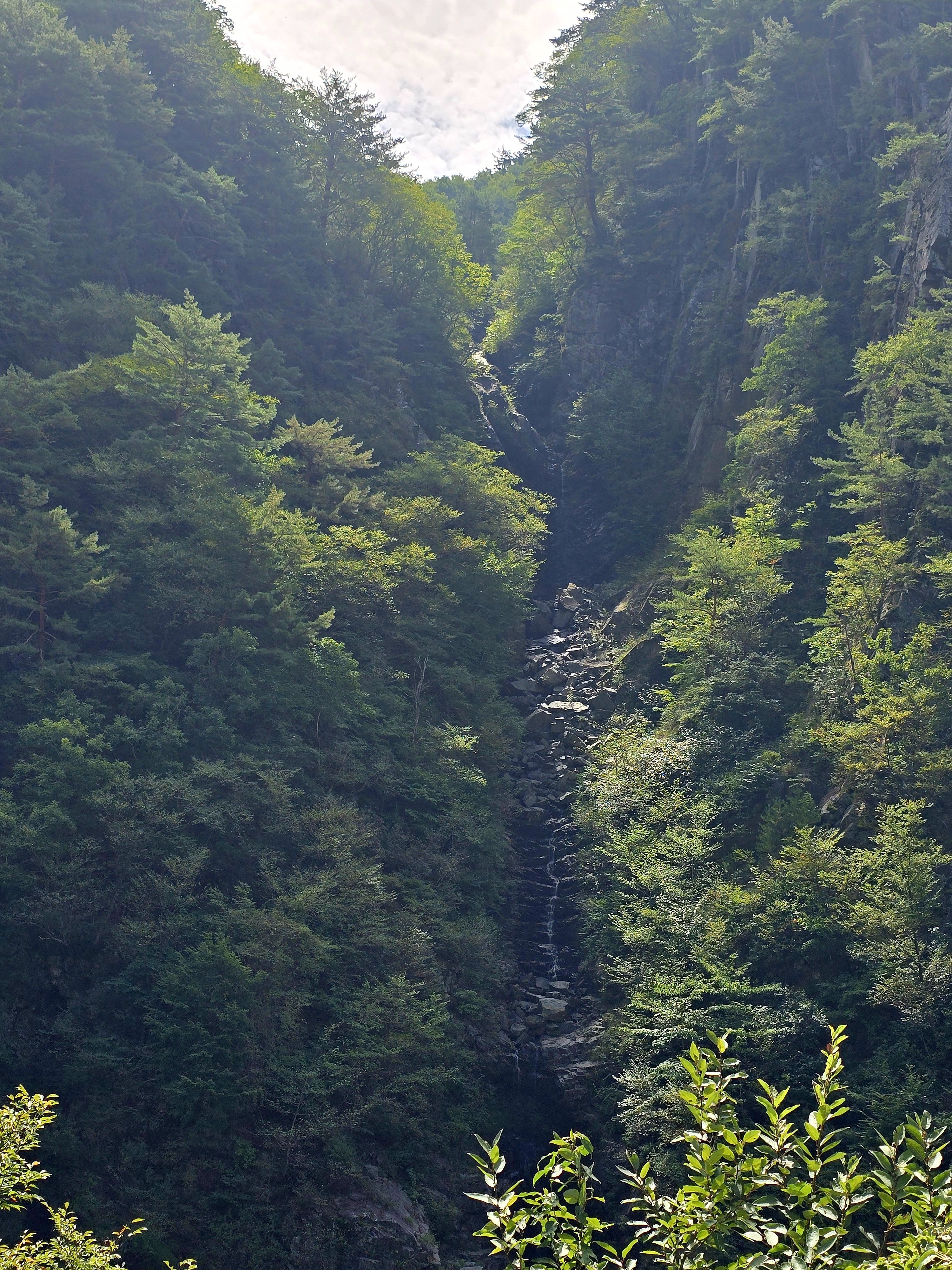 물이 많을때는 3단으로 떨어진다고 하는데 지금은 물량이 적다. 이 폭포는 물길을 바꾸어서 생긴 일종의 인공폭포라고 한다. 노추산에서 내려오는 계곡의 물길을 돌려서 만든 것이다. 자연폭포가 아니어서 아쉬웠다. 그러나 물을 양수해서 만든 인공폭포가 아니어서 그나마 다행이라는 생각을 했다.