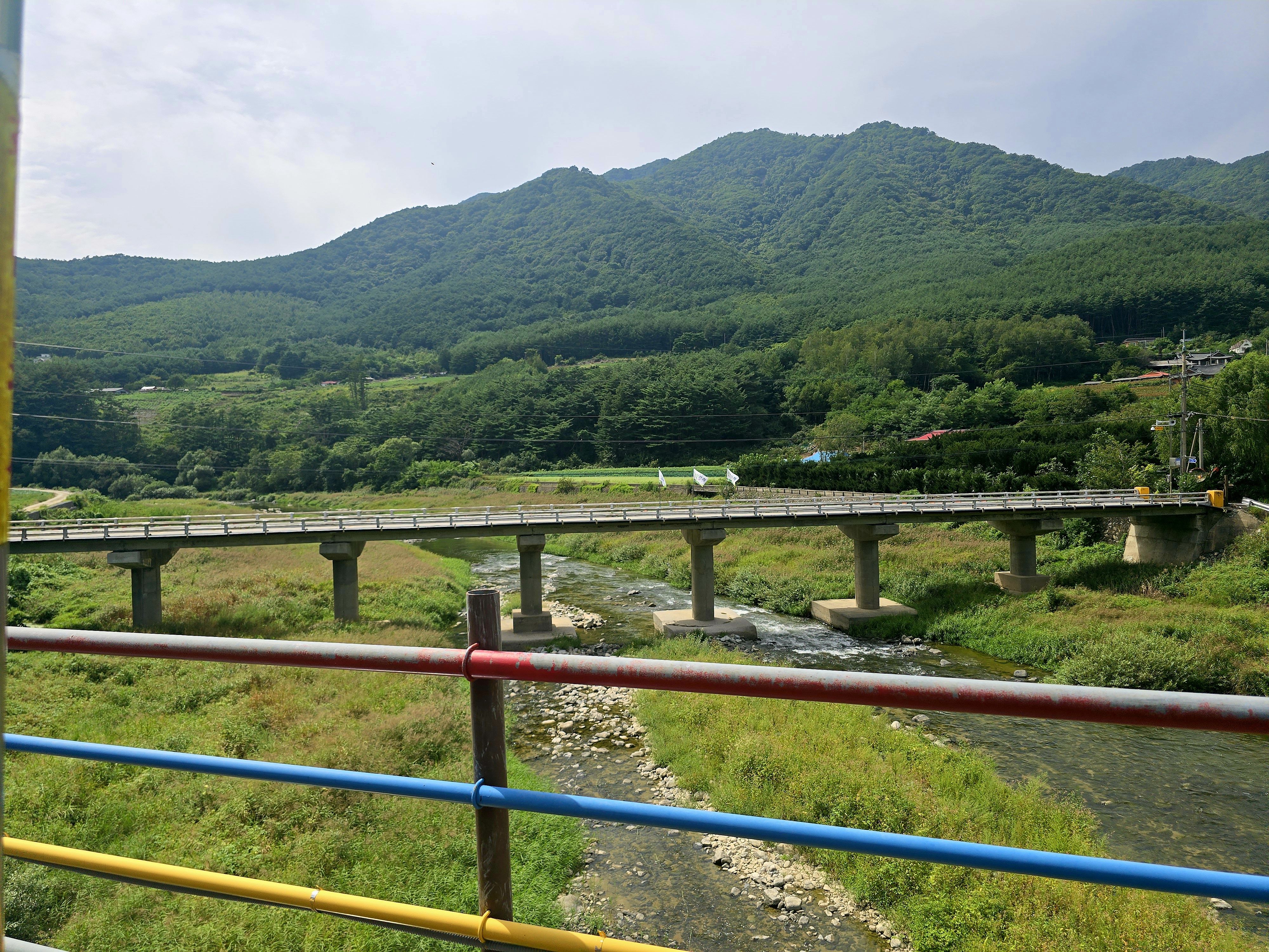 아우라지와 가까운 송천 다리 위를 지난다.