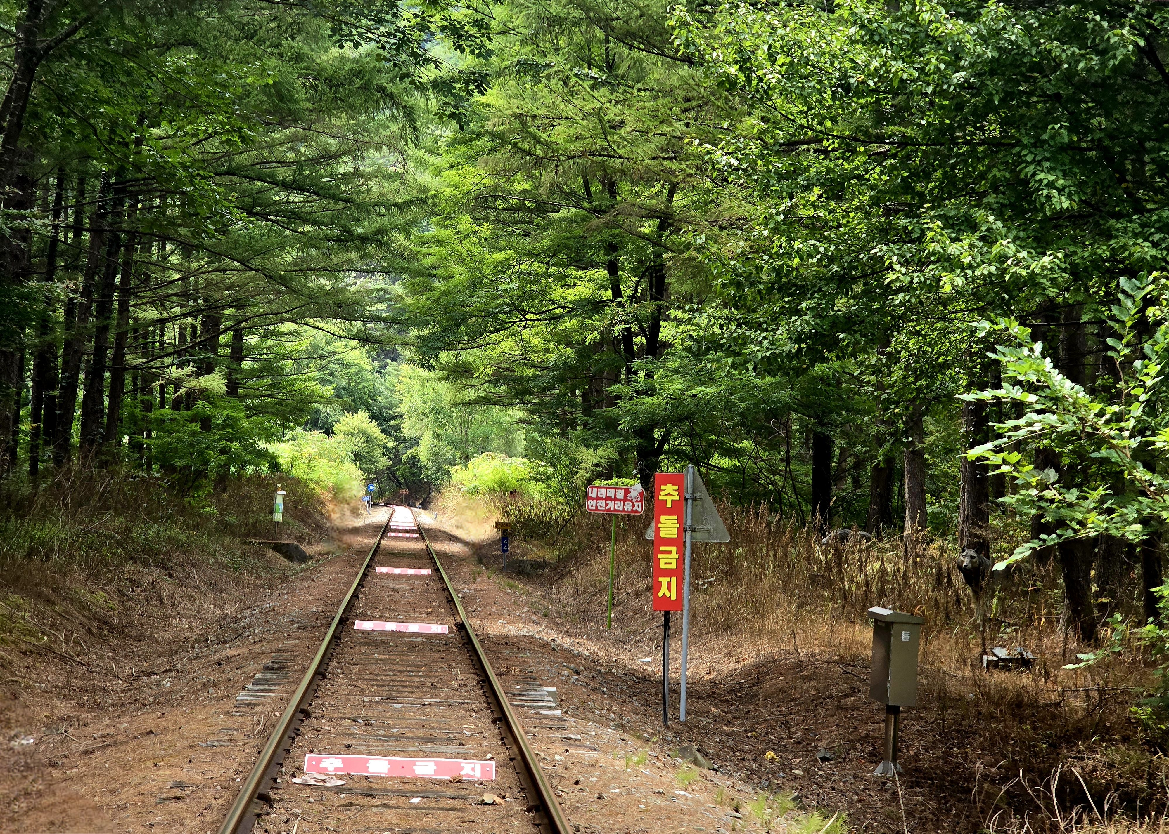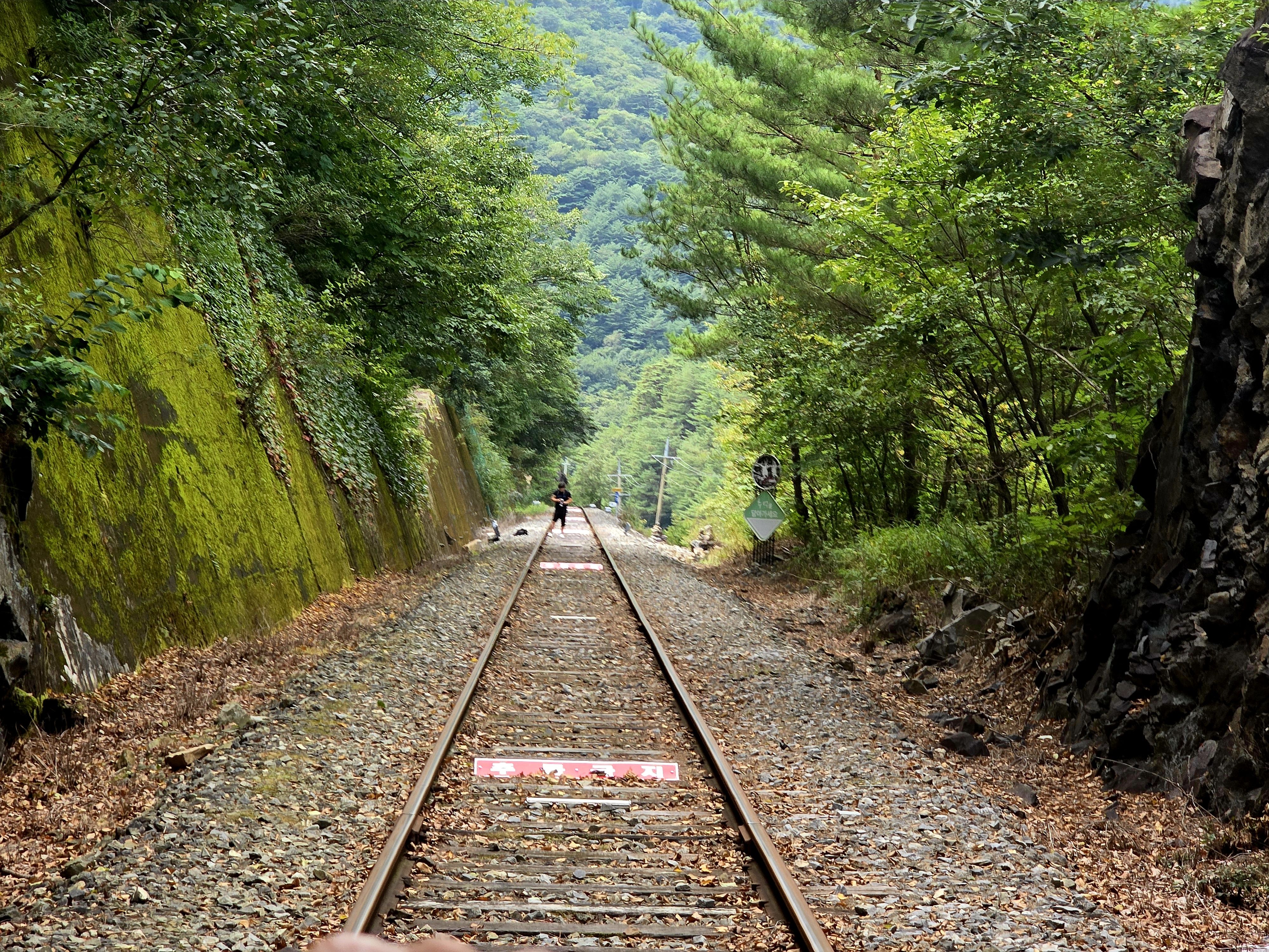 울창한 숲으로 둘러싸인 철로를 달려본다.
