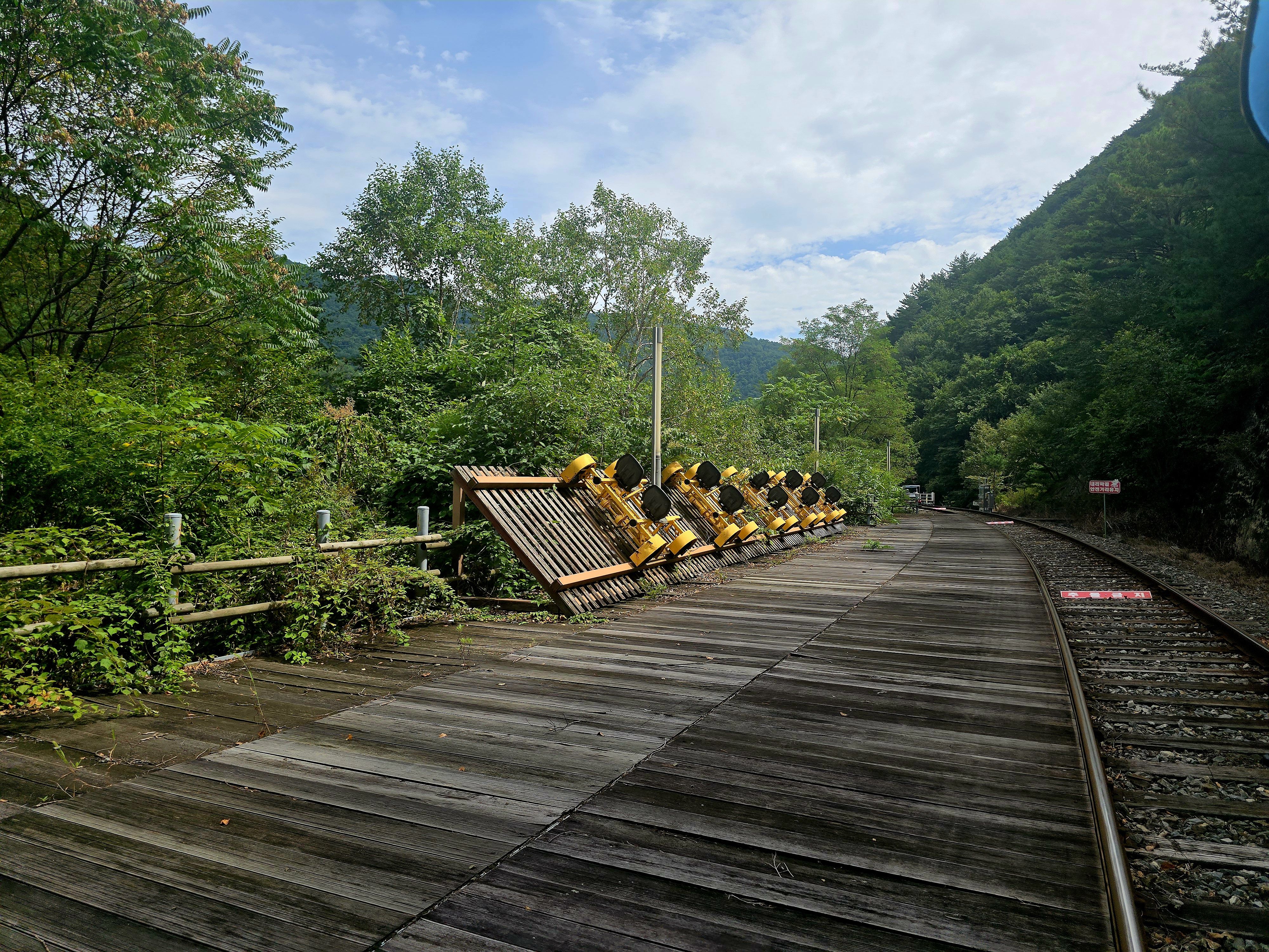 구절이역에서 레일바크 타고 아우라지역에 내려 풍경열차 타고 다시 구절리 역으로 돌아가게 된다.