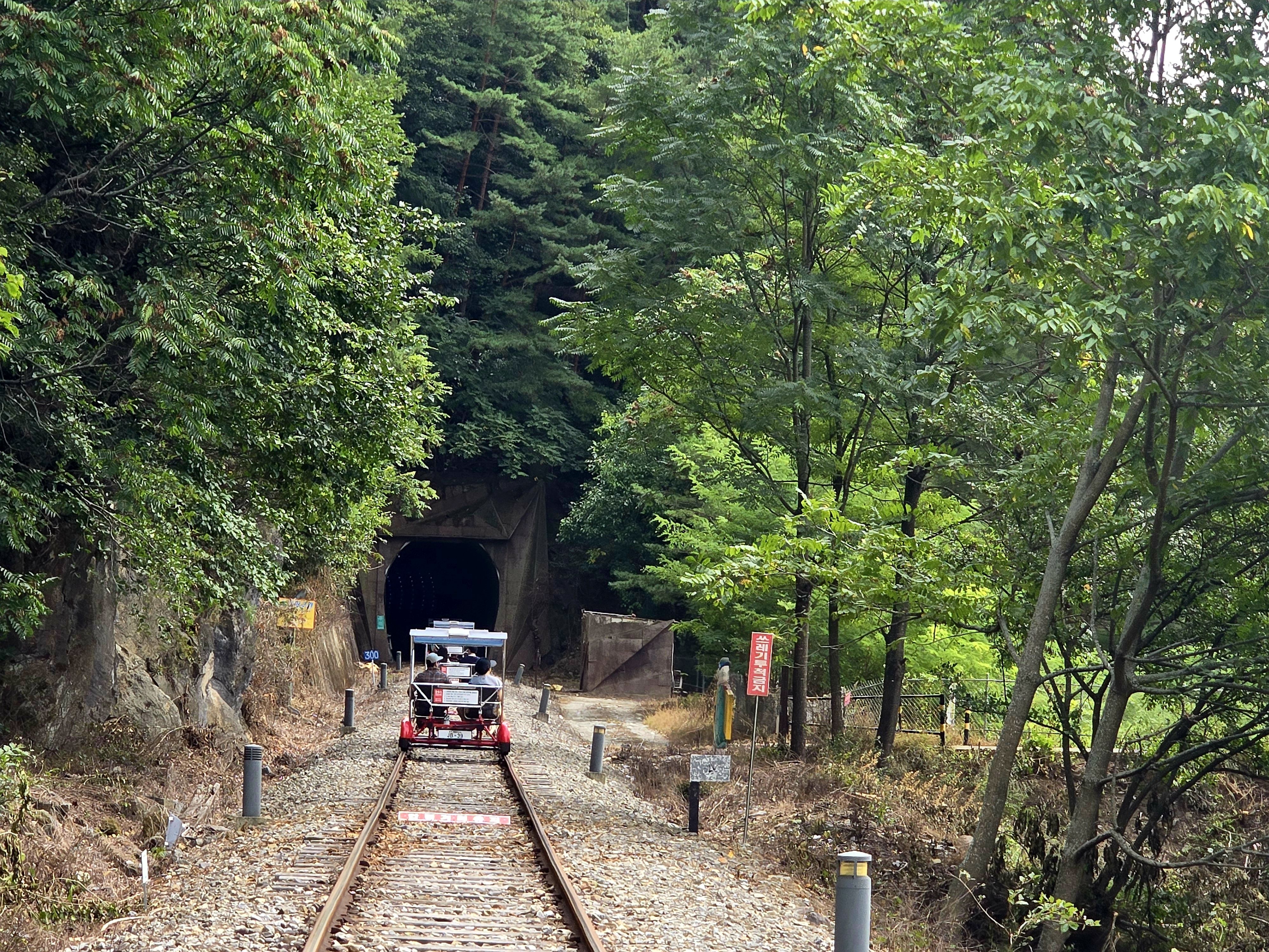 뒤돌아본 터널 쪽 ~ 아직 뒤쪽 레일바크는 보이지 않는다.