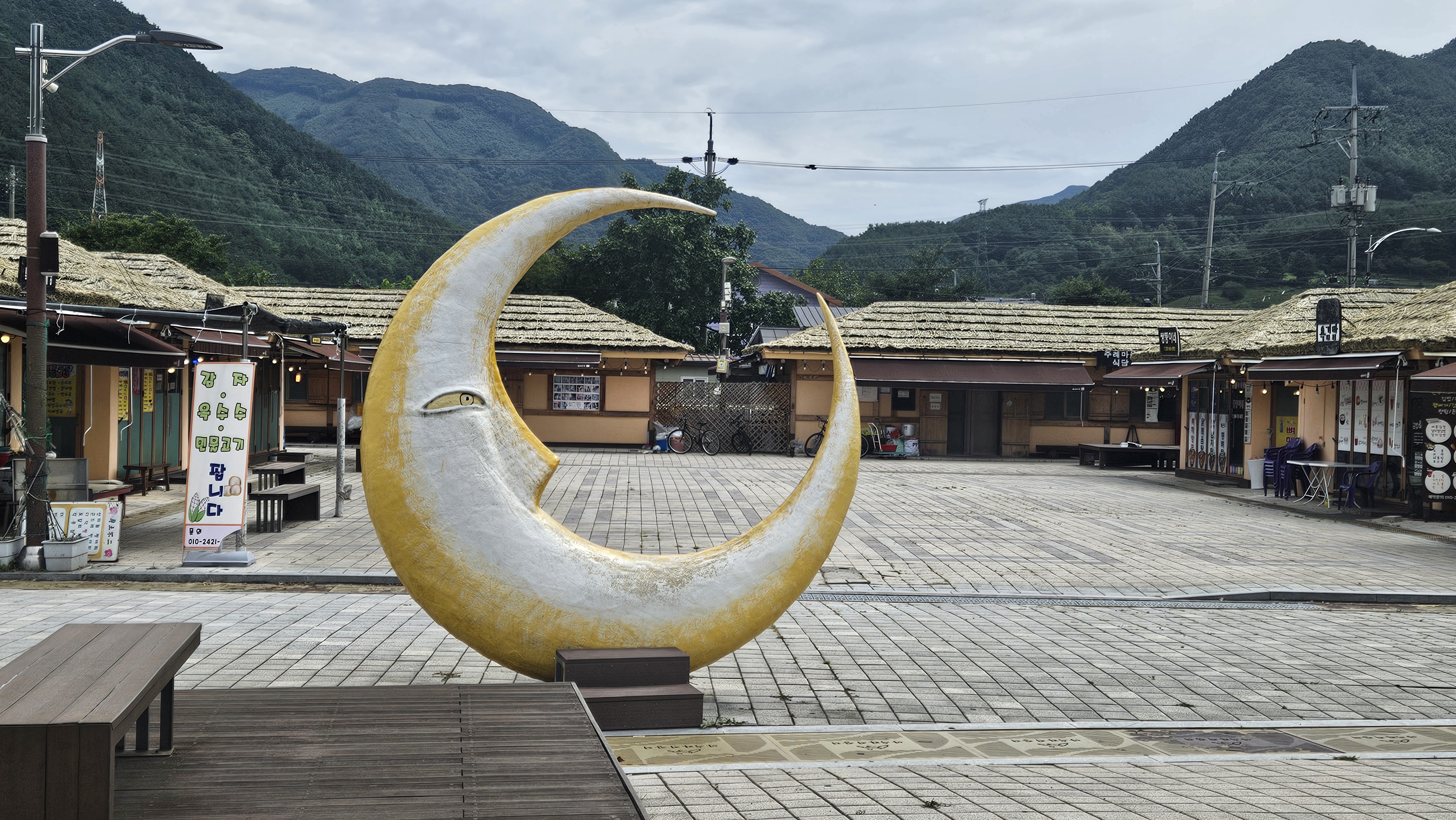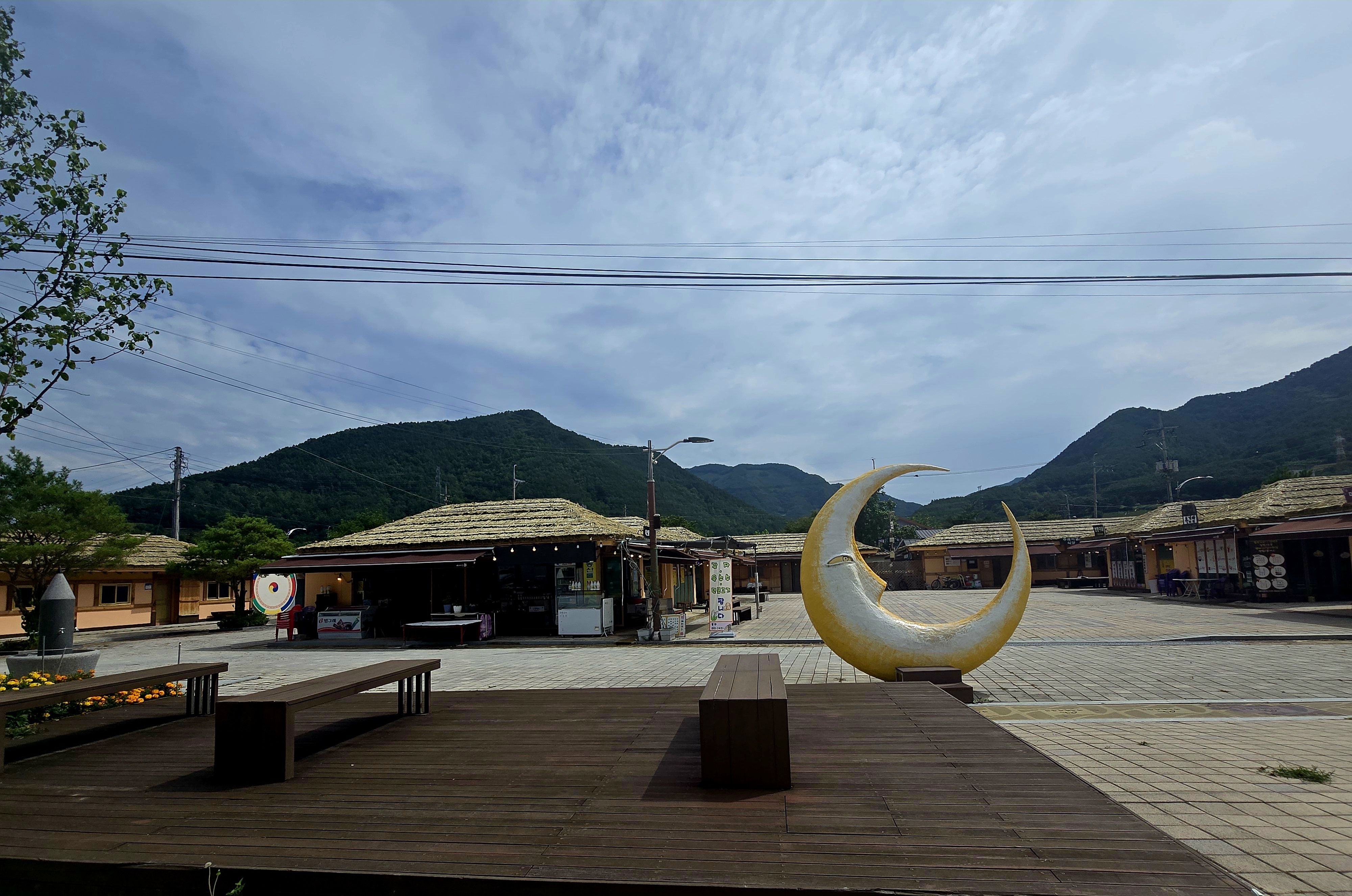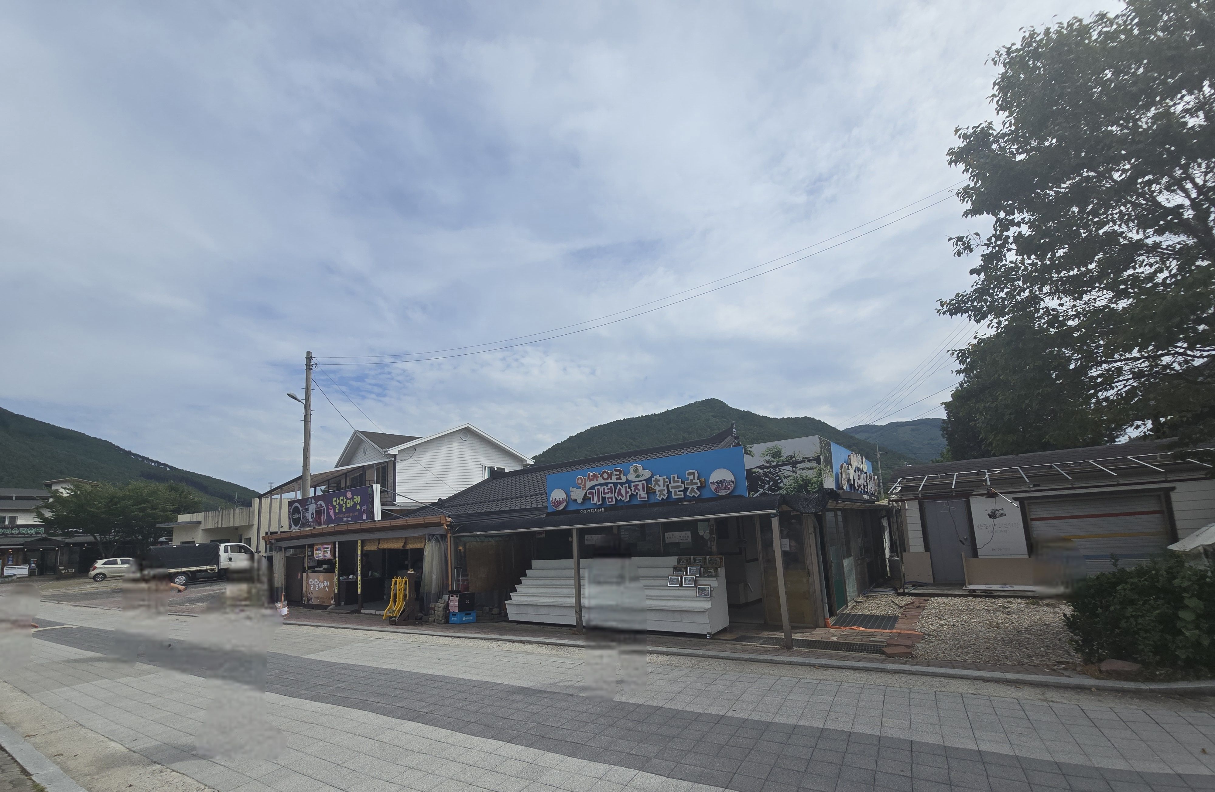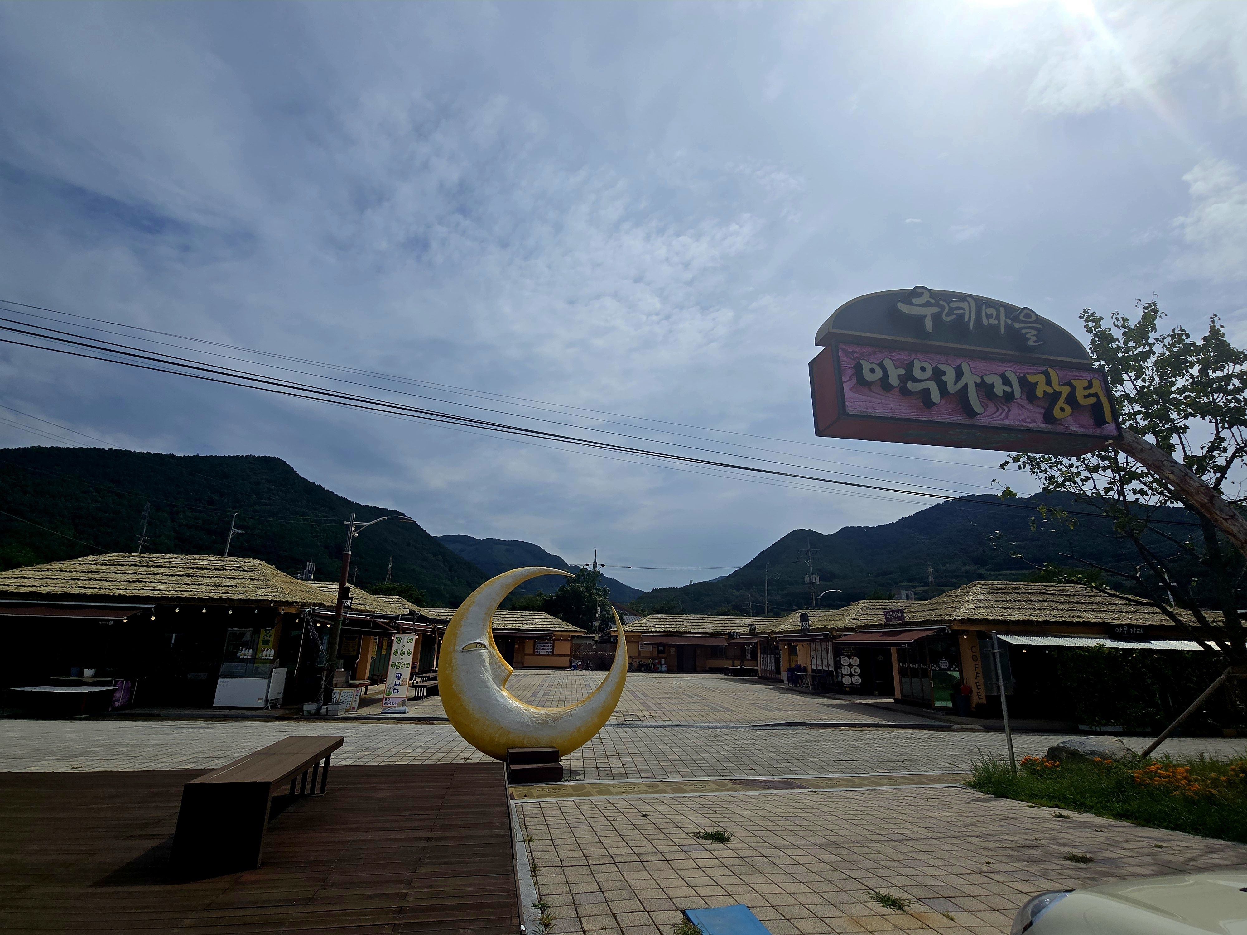 아우라지 장터, 장터라고는 되어있지만 장이 선 것은 본 적이 없고 식당과 카페 그리고 주전부리 할 것 등이 있는 정도다.