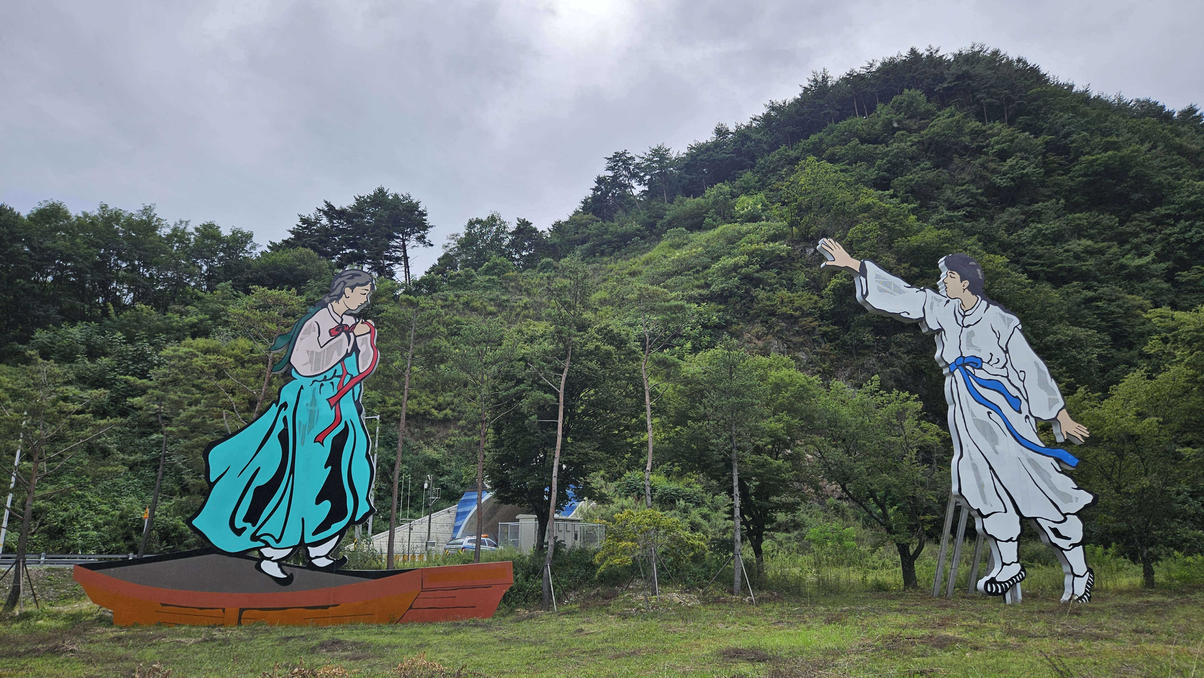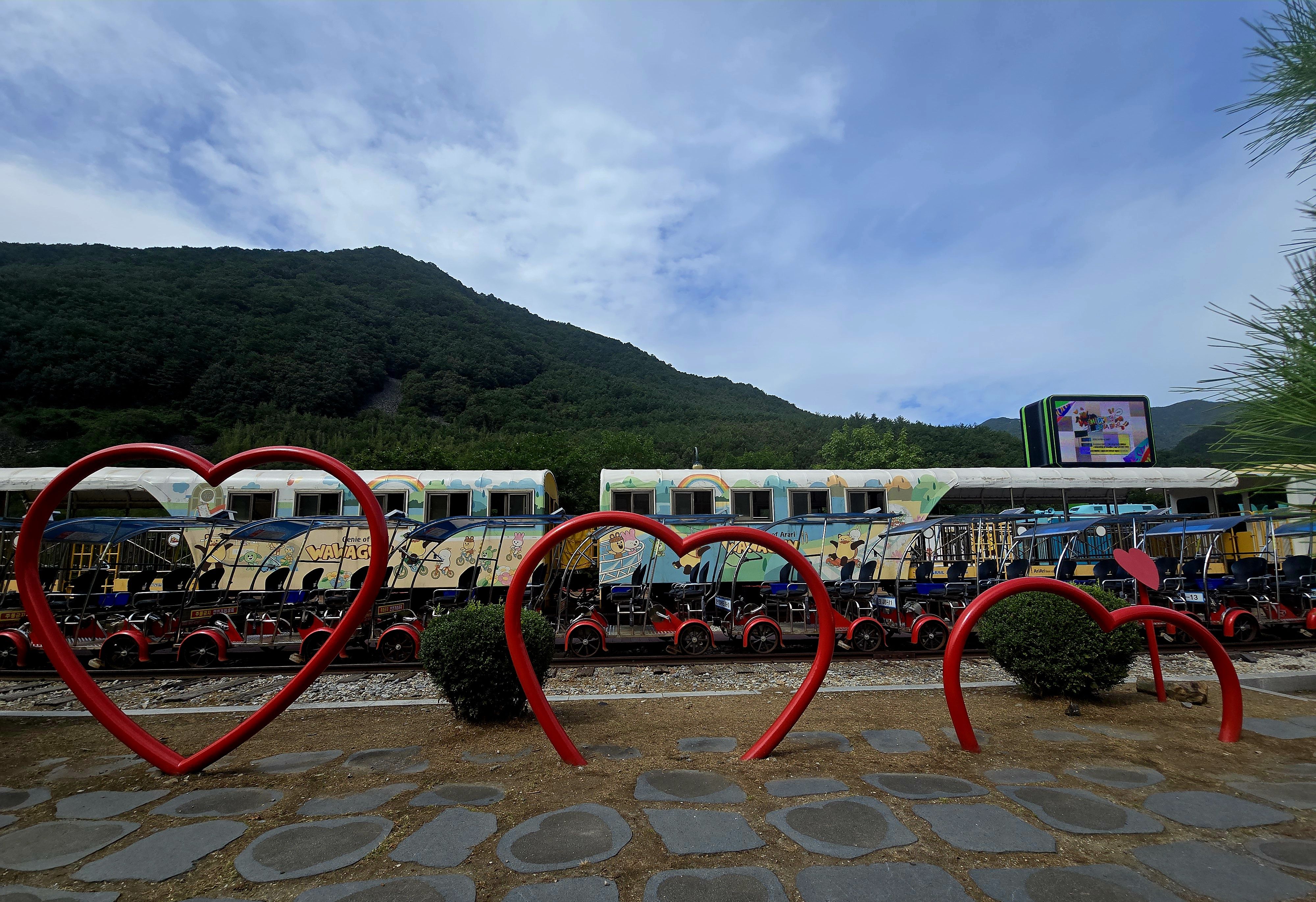 이제 정선레일 바크를 타고 남녀의 애절한 마음을 표현한 조형물을 뒤로 하고 정선읍으로 향해본다....