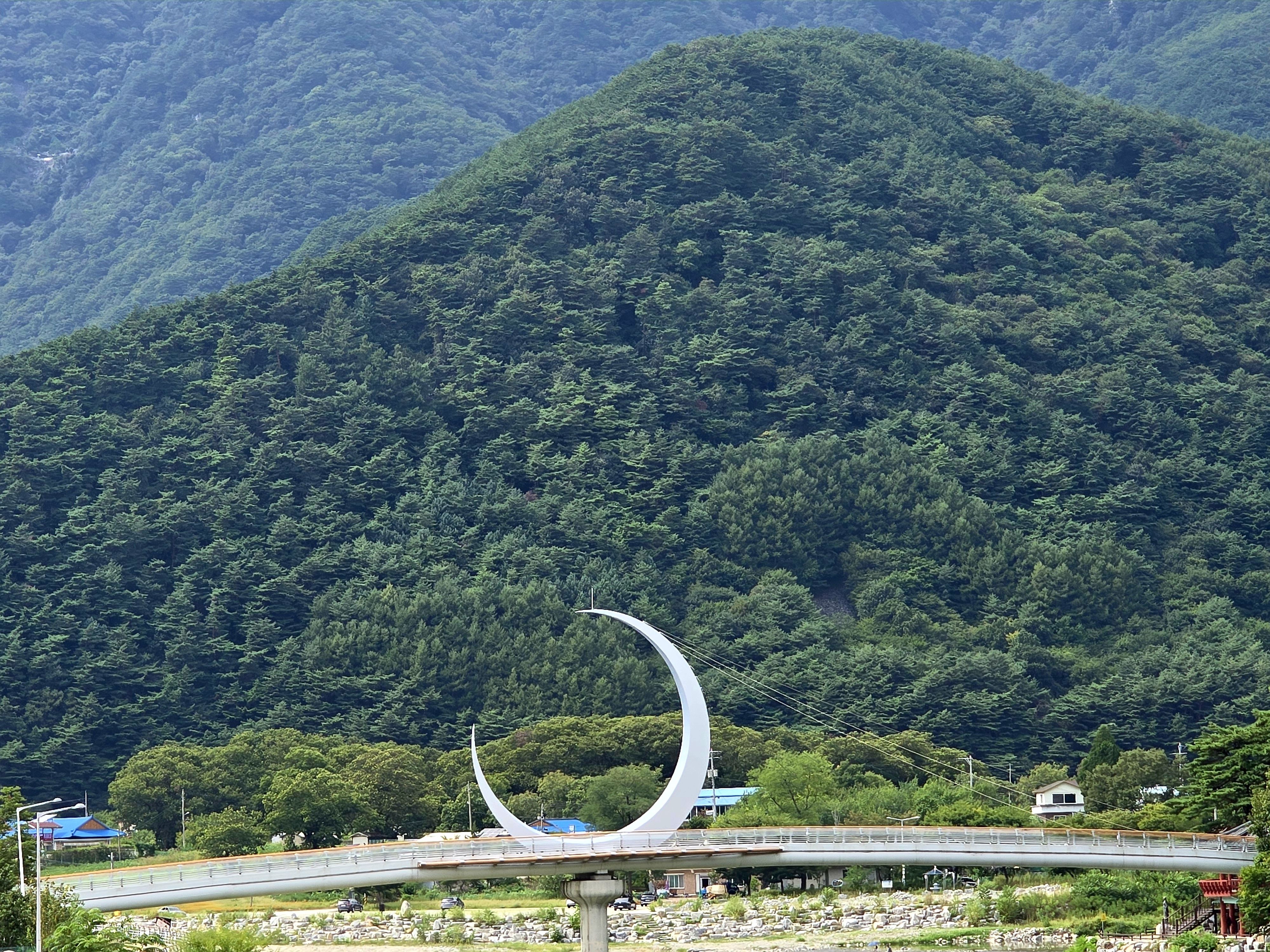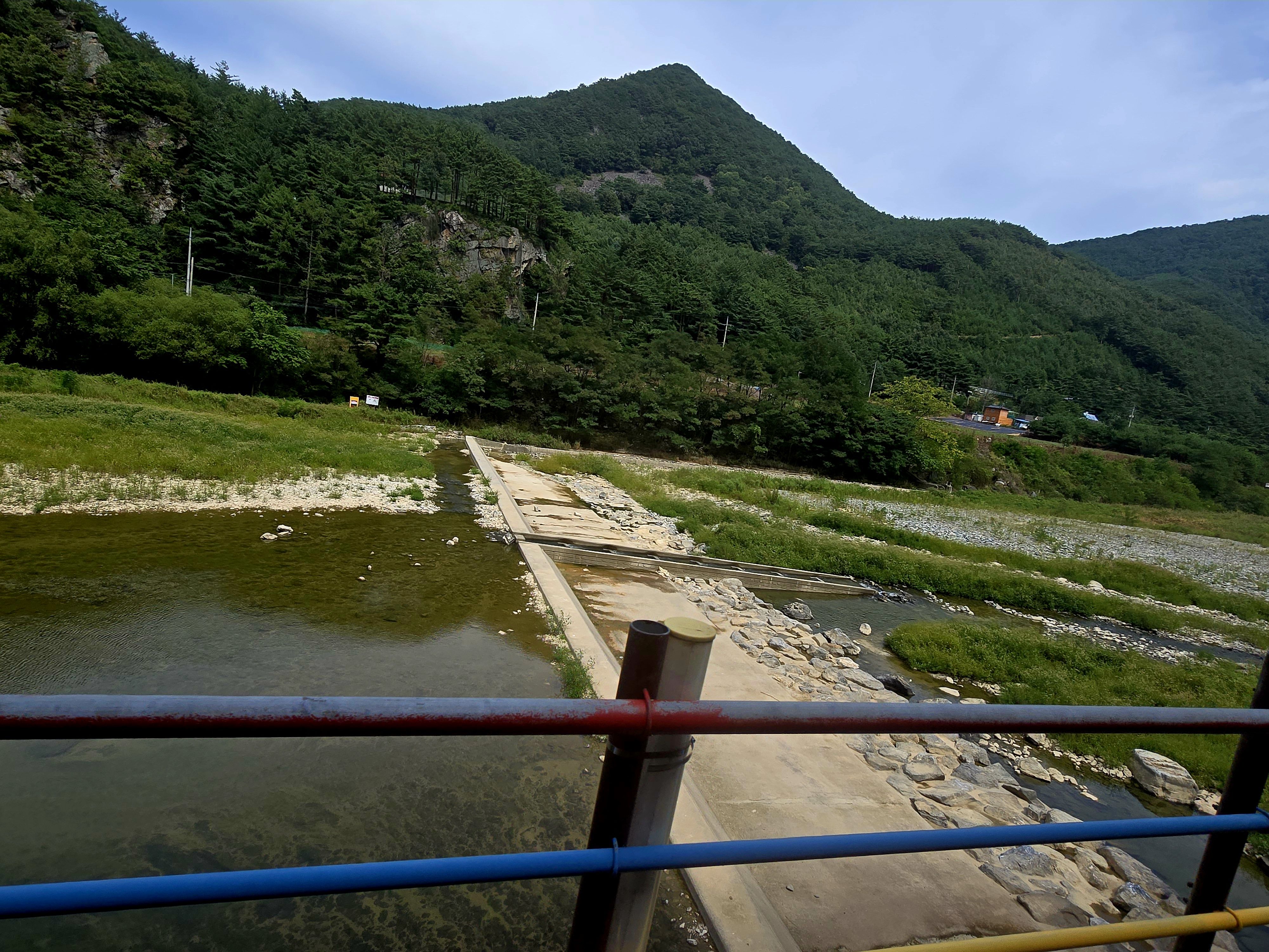 와우~ 아까 다녀왔던 아우라지 달 다리(월영교) 옆을 지난다. 이곳은 삼척시 하장면에서 발원하여 흐르고 있는 임계쪽의 골지천