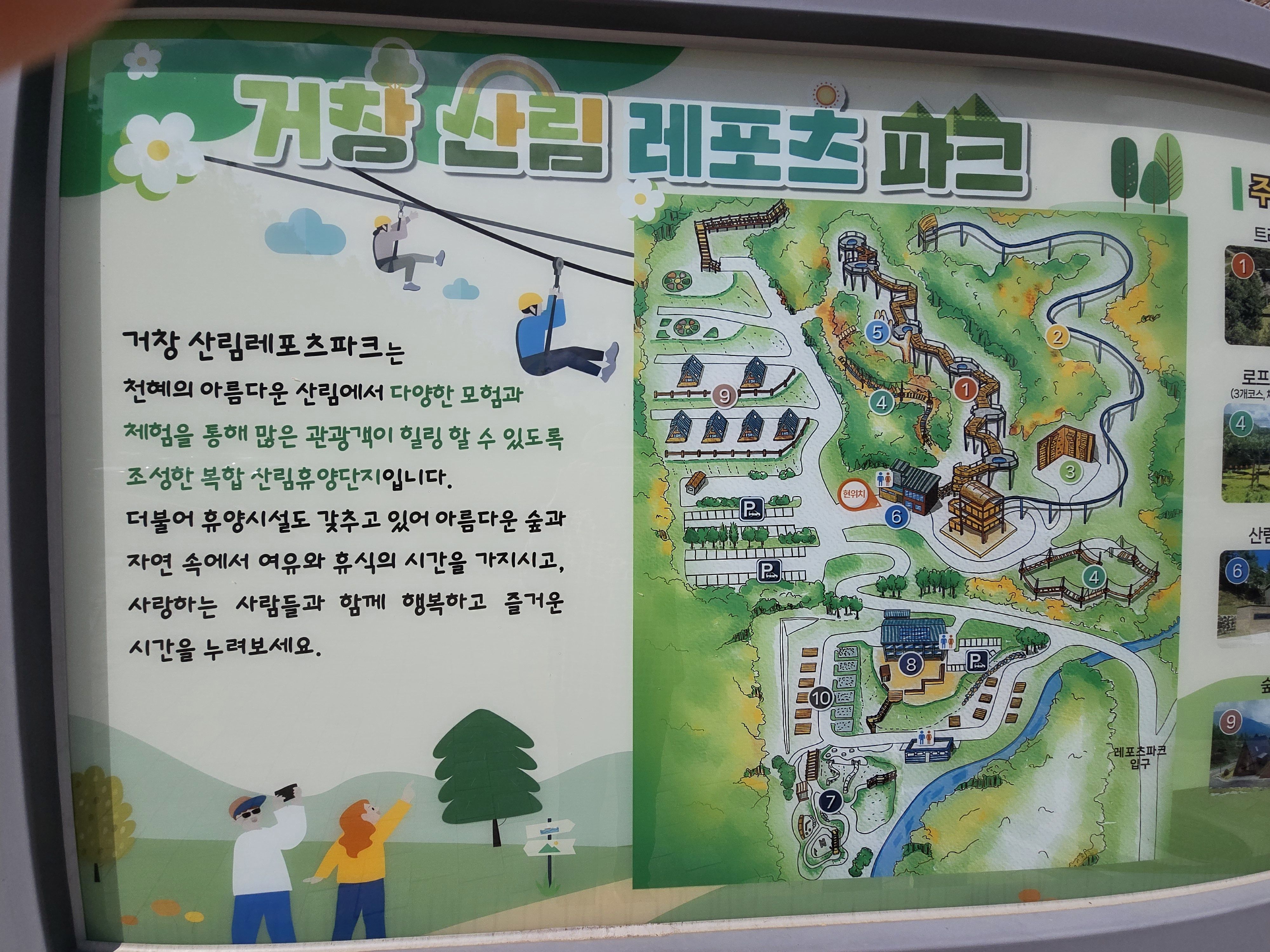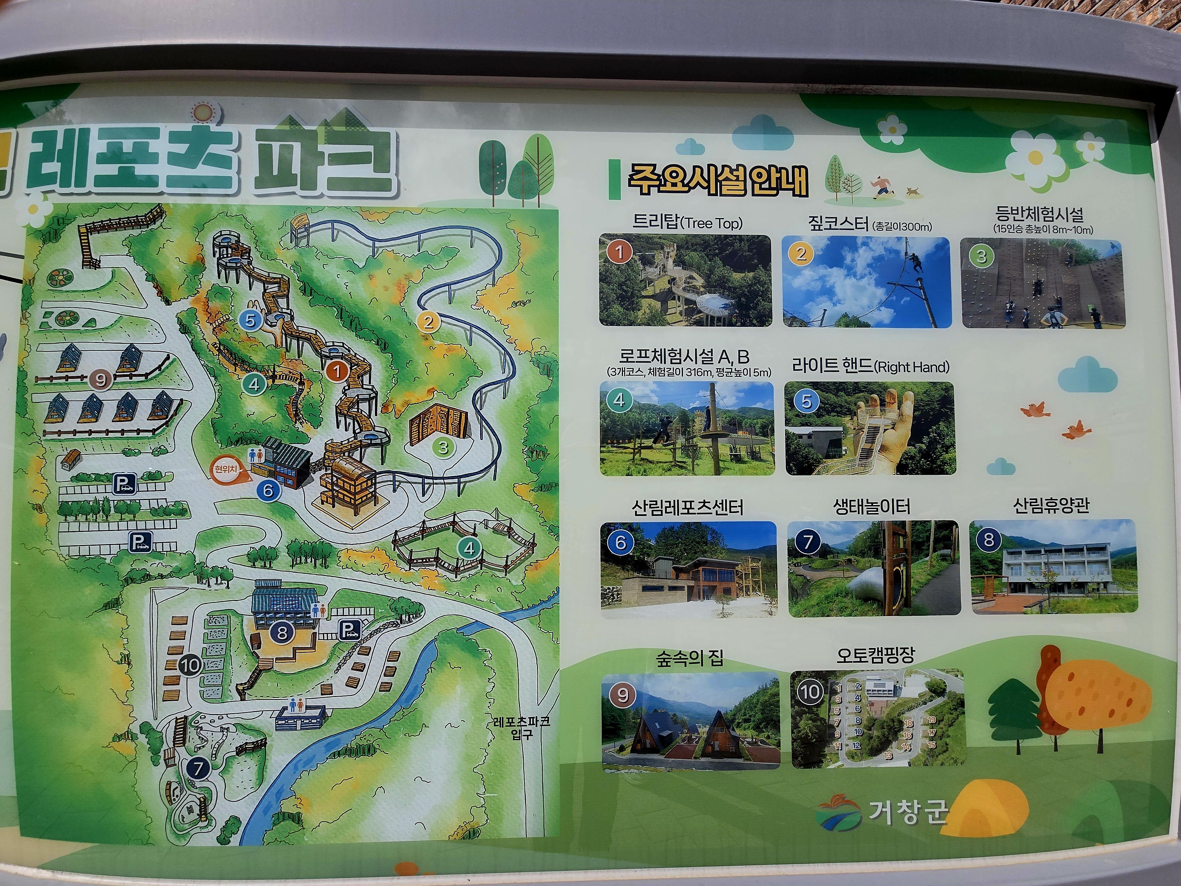 산림레포츠파크는 휴양림으로 숙박시설이 있고 짚코스터, 등반체험시설, 로프어드 벤처 등이 있어 거창 여행 중이라면 한 번 쯤들려볼 만하다.