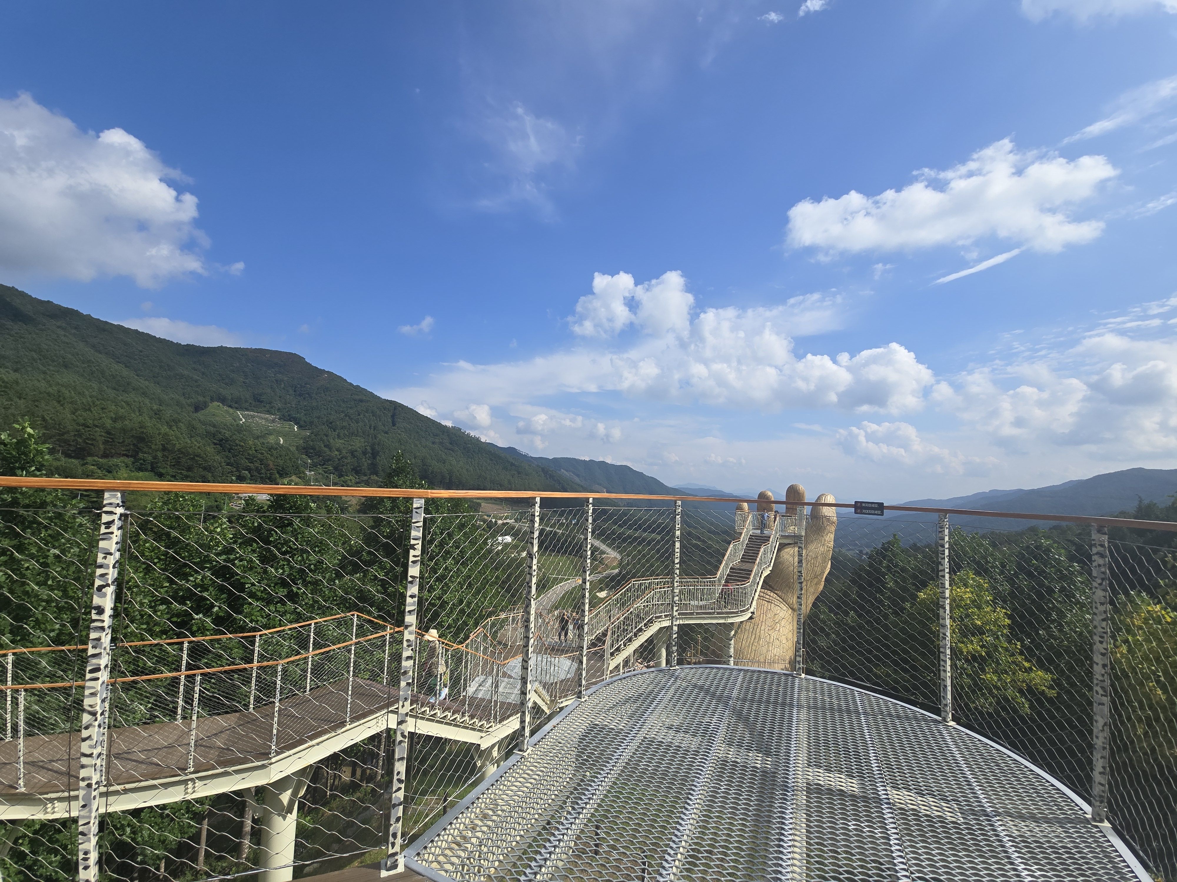 전망대에 서면 진짜 다낭 골든브릿지 떠오른다. 금빛 대신 초록빛 손이지만, 그 조화로움은 더 자연스럽고 한국적이다. SNS에 사진을 올리면 “여기 해외 아니야?”라는 댓글이 달릴 만큼 이국적인 분위기. 특히 날씨가 맑은 날엔 하늘과 손이 맞닿은 듯한 사진이 나오지만 전망대 공간도 너무 협소하다.