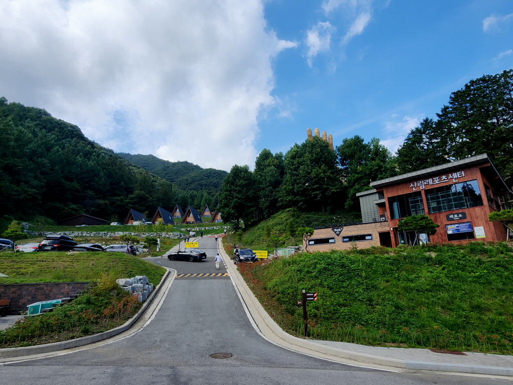 주차장에서 본 거창 산림레포츠파크 전경, 주차장에 주차하고 주차료는 무료