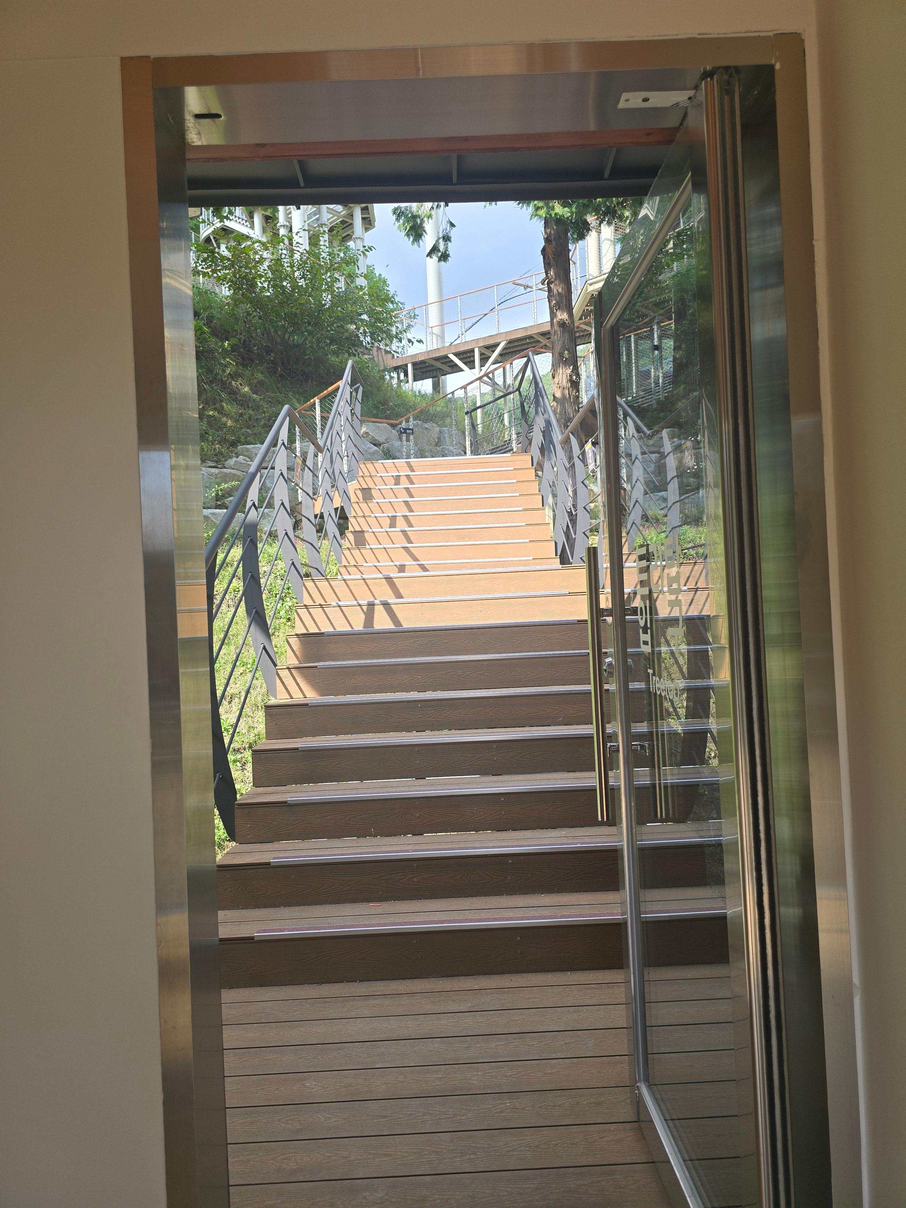 전망대로 오르는 길은 생각보다 완만하며, 엘리베이터를 타고 2층에서부터 계단을 따라 올라가면 된다.