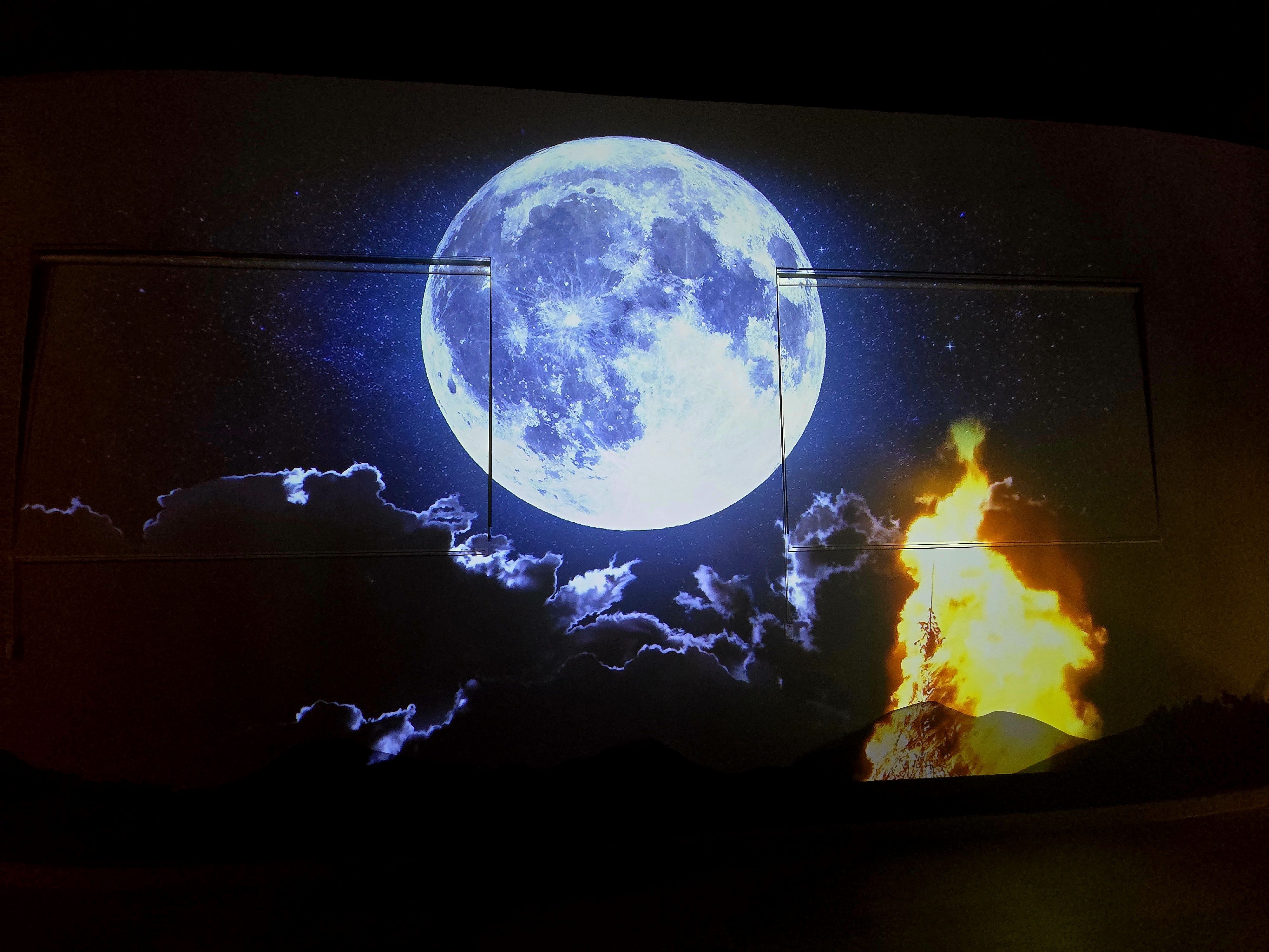 보름달 아래 두 개의 고가 부딪히다.