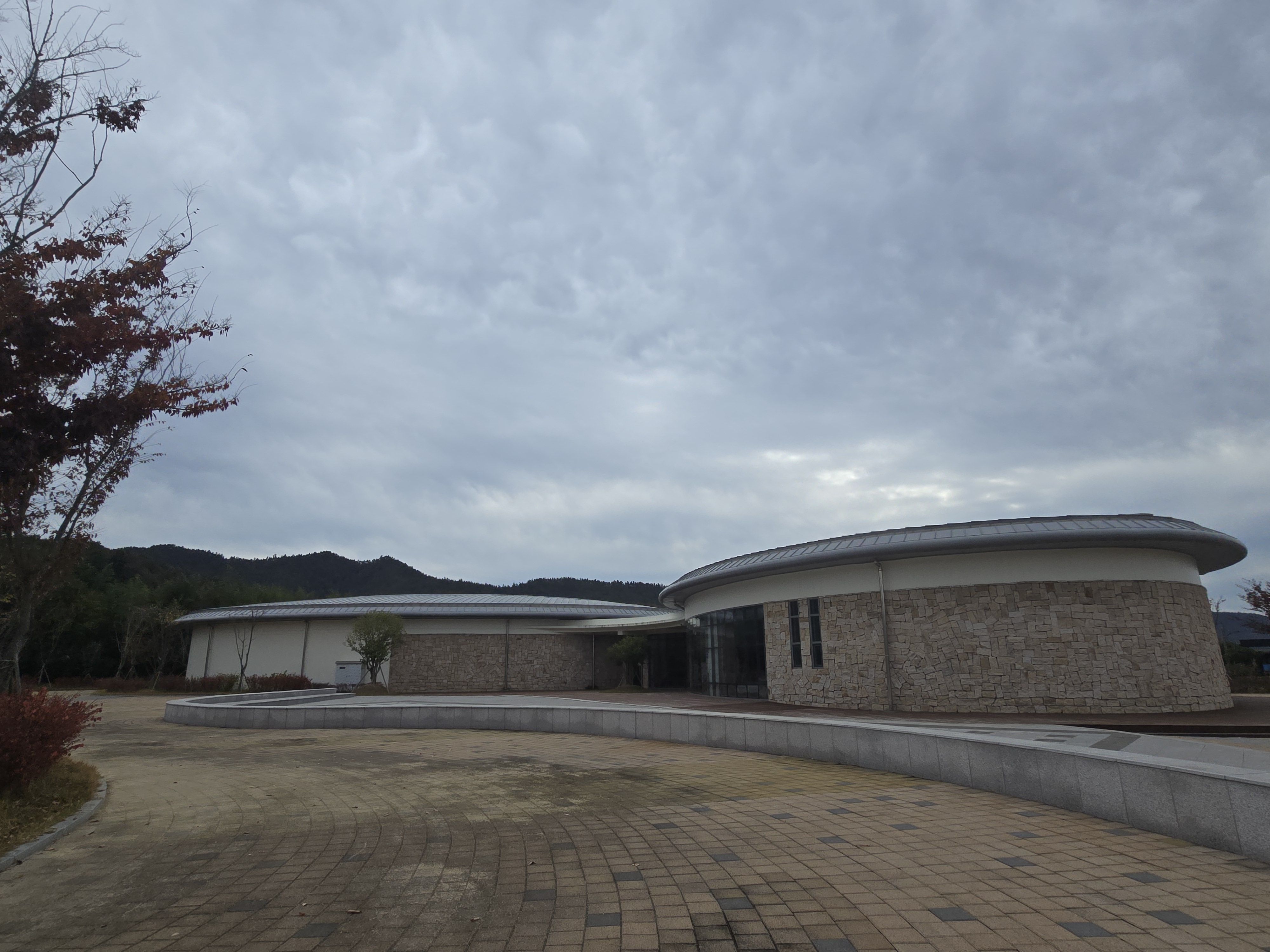 타원형의 목조건축으로 지어진 왼쪽의 전시관은 하멜이 표착한 남도의 섬을 상징한다.