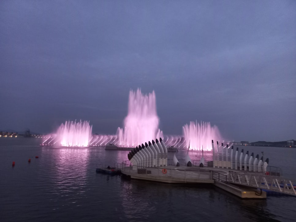 평화광장을 둘러보며 밤이 오기를 기다리는 시간이 참 설레었어요. 해가 지고 나니 바다 쪽에서 불빛이 하나둘 켜지더니, 드디어 쇼가 시작되었는데 물줄기가 리듬을 타고 춤을 추고, 그 위로 빛과 음악이 어우러지면서 마치 바다 위에 작은 공연장이 생긴듯한 기분이었다. 이게 바로 전남 여행 목포 평화광장 춤추는 바다분수 쇼의 진짜 매력이다.