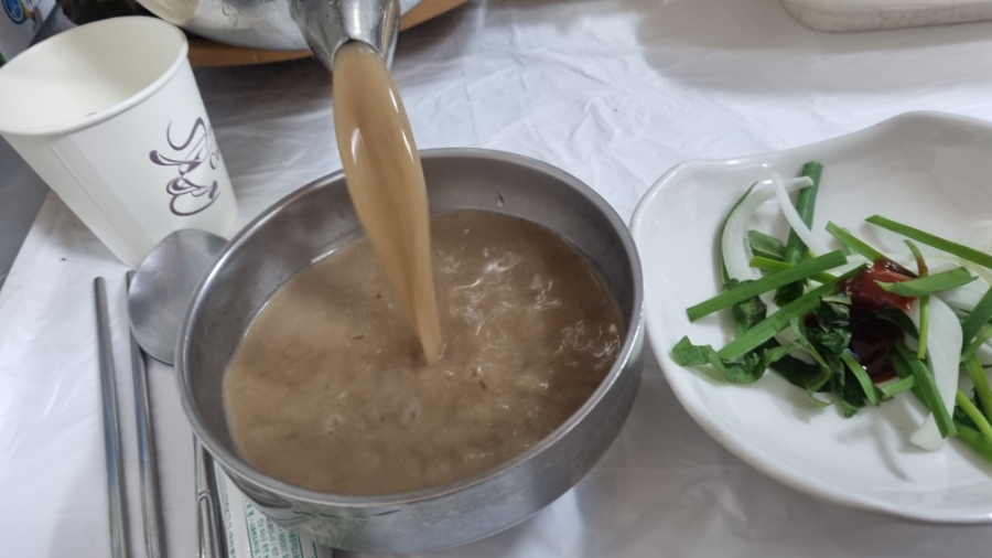 직접 가마솥에 불을 떼서 매일 푹 끓여 나온 장어스프는 일품인데 생각보다 안 비리고 맛 있었던 국물(따뜻함)이다.